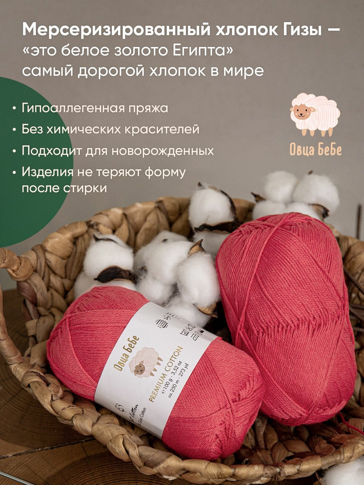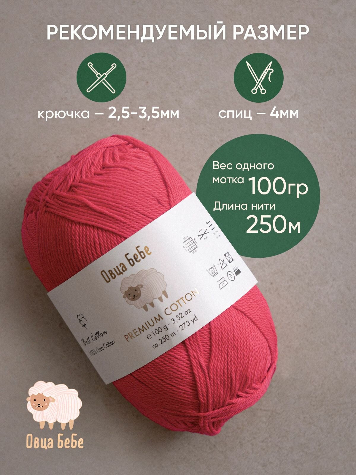 Отзывы на Пряжа для вязания Premium Cotton Giza, цвет розовый (набор из 2 шт), 100% мерсеризованный хлопок