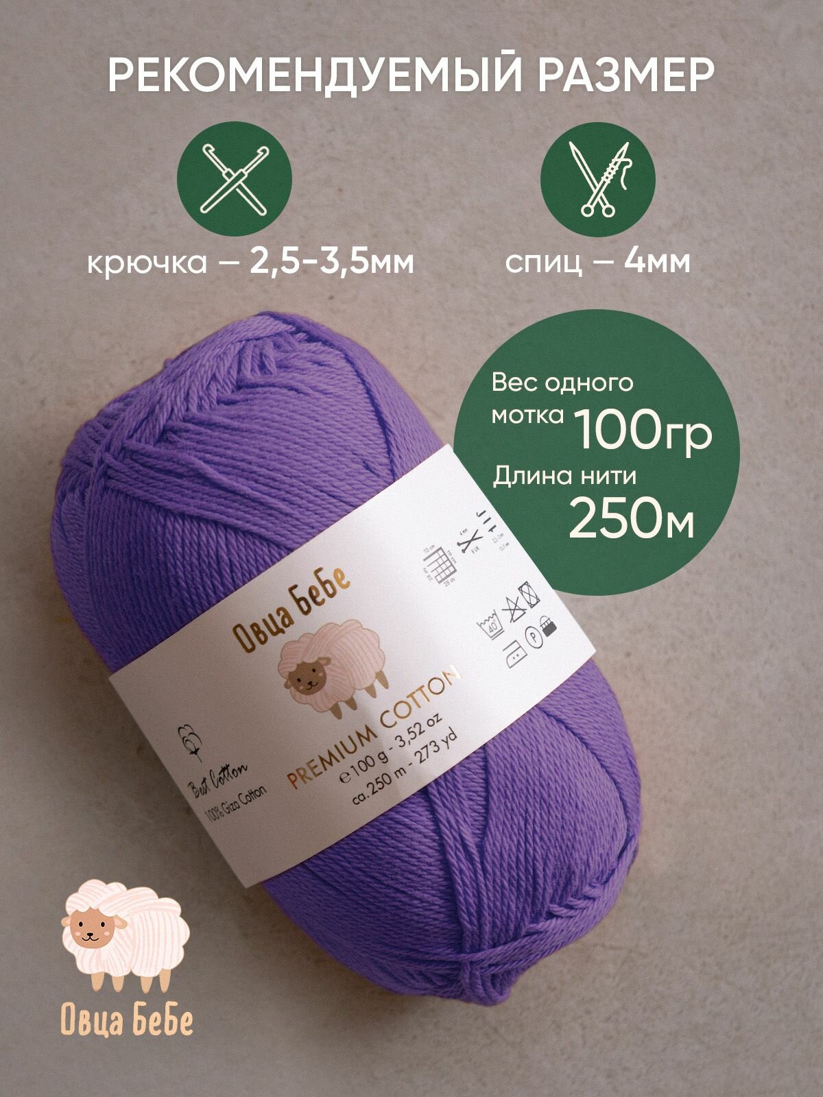 10 цен на Пряжа для вязания Premium Cotton Giza, цвет фиолетовый (набор из 2 шт), 100% мерсеризованный хлопок