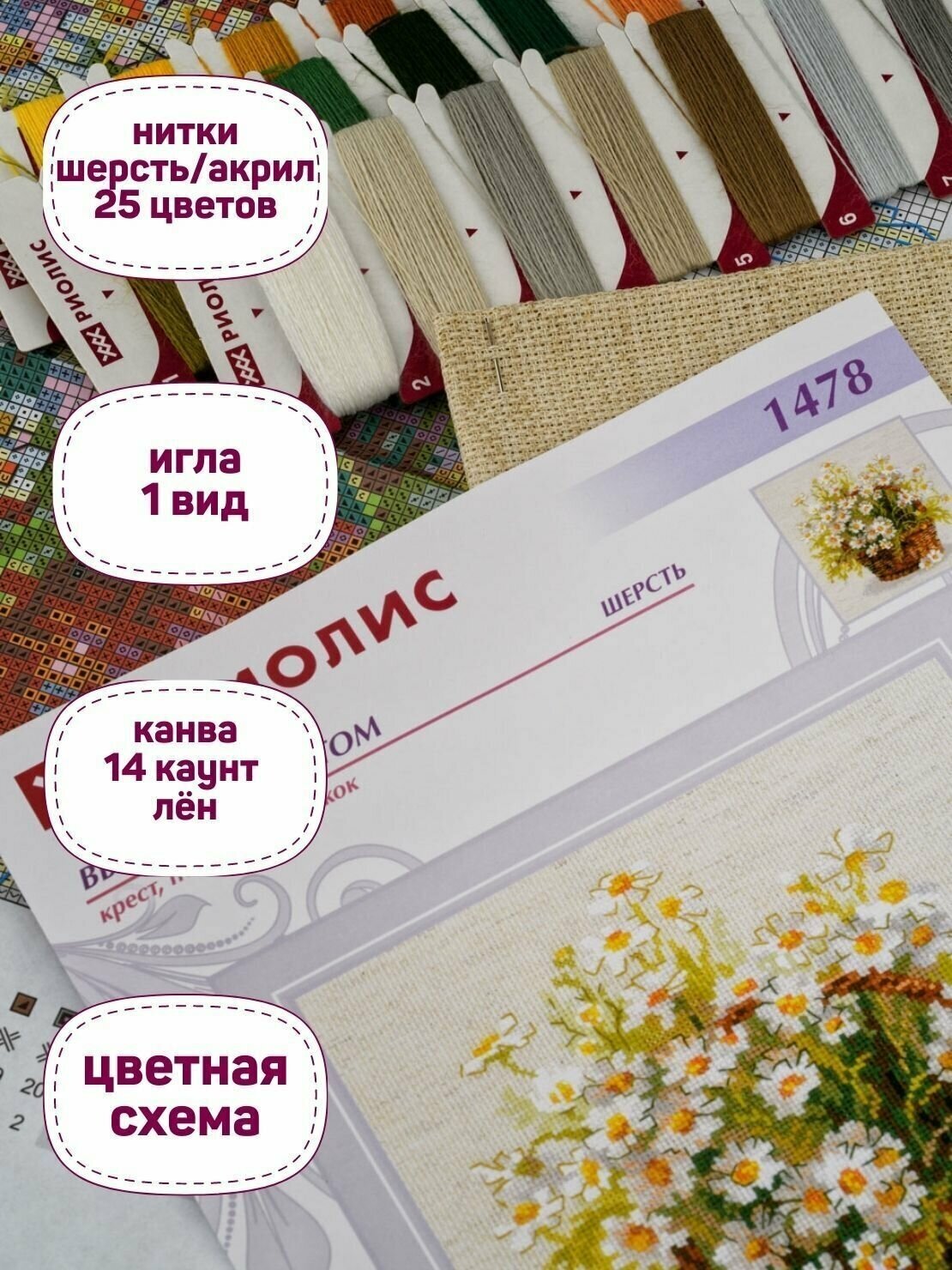 | Комплектация | канва, нитки для вышивания полушерсть, игла, цветная схема, инструкция |