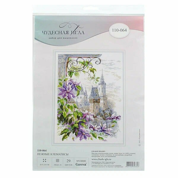 Набор для вышивания Чудесная Игла 110-064 "Нежные клематисы" 20 x 26 см информация: