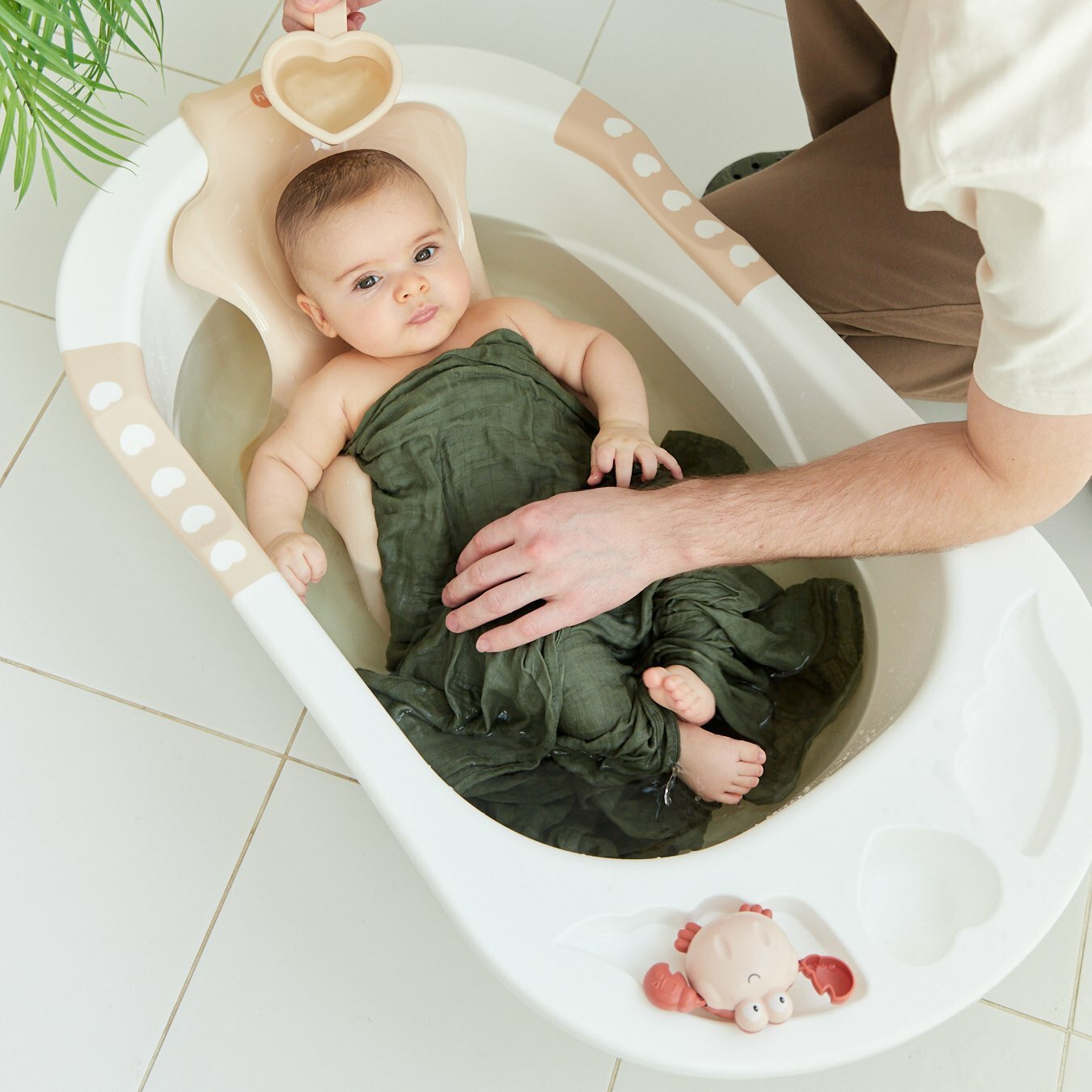 34005, Ванночка детская Happy Baby для купания Bath Comfort, 40л, съемная горка, ванна детская, со сливом, бежевый информация: