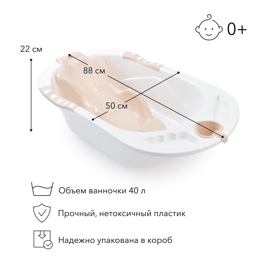 10 цен на 34005, Ванночка детская Happy Baby для купания Bath Comfort, 40л, съемная горка, ванна детская, со сливом, бежевый