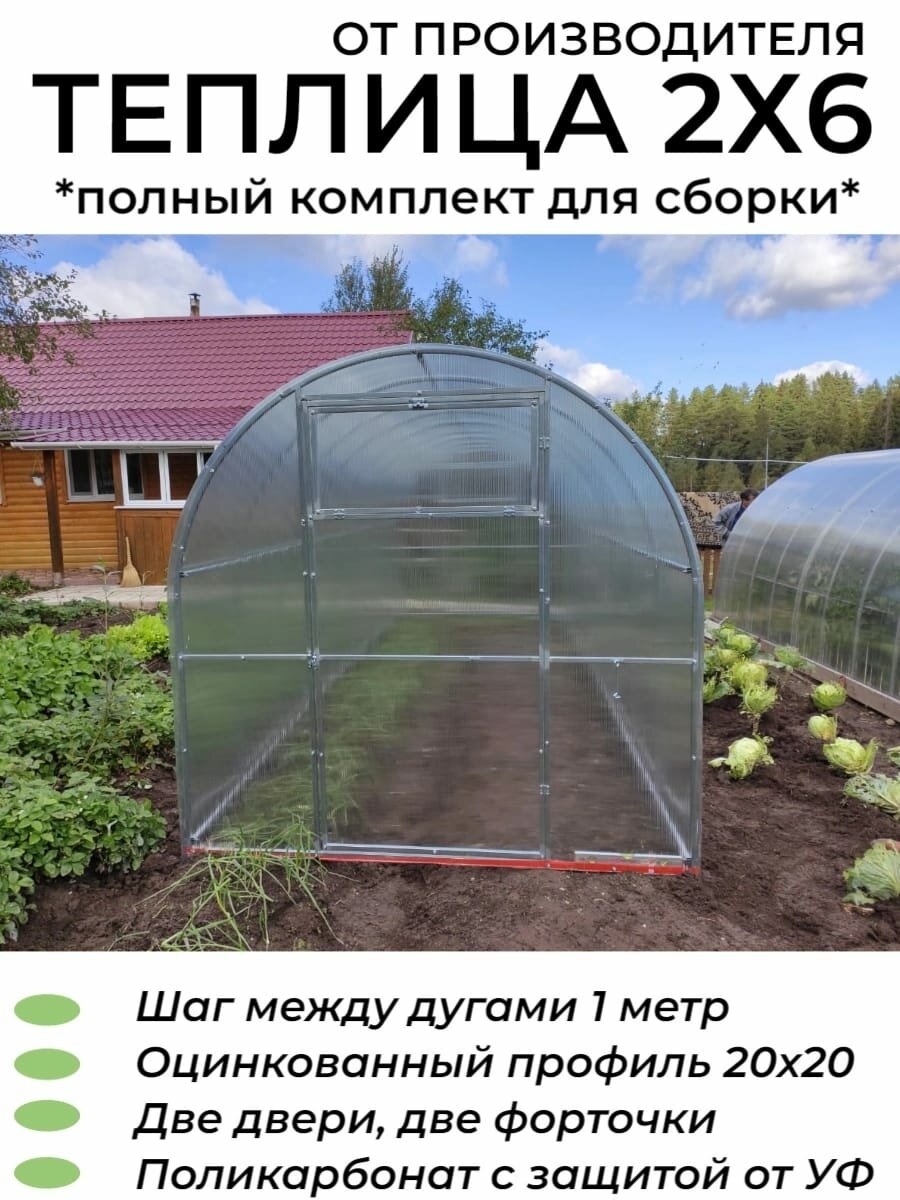 10 цен на Теплица Арочная (Поликарбонат в комплекте), оцинкованный каркас 20*20 мм, полный комплект для сборки. 2х6х2.02 м, шаг 1 м.