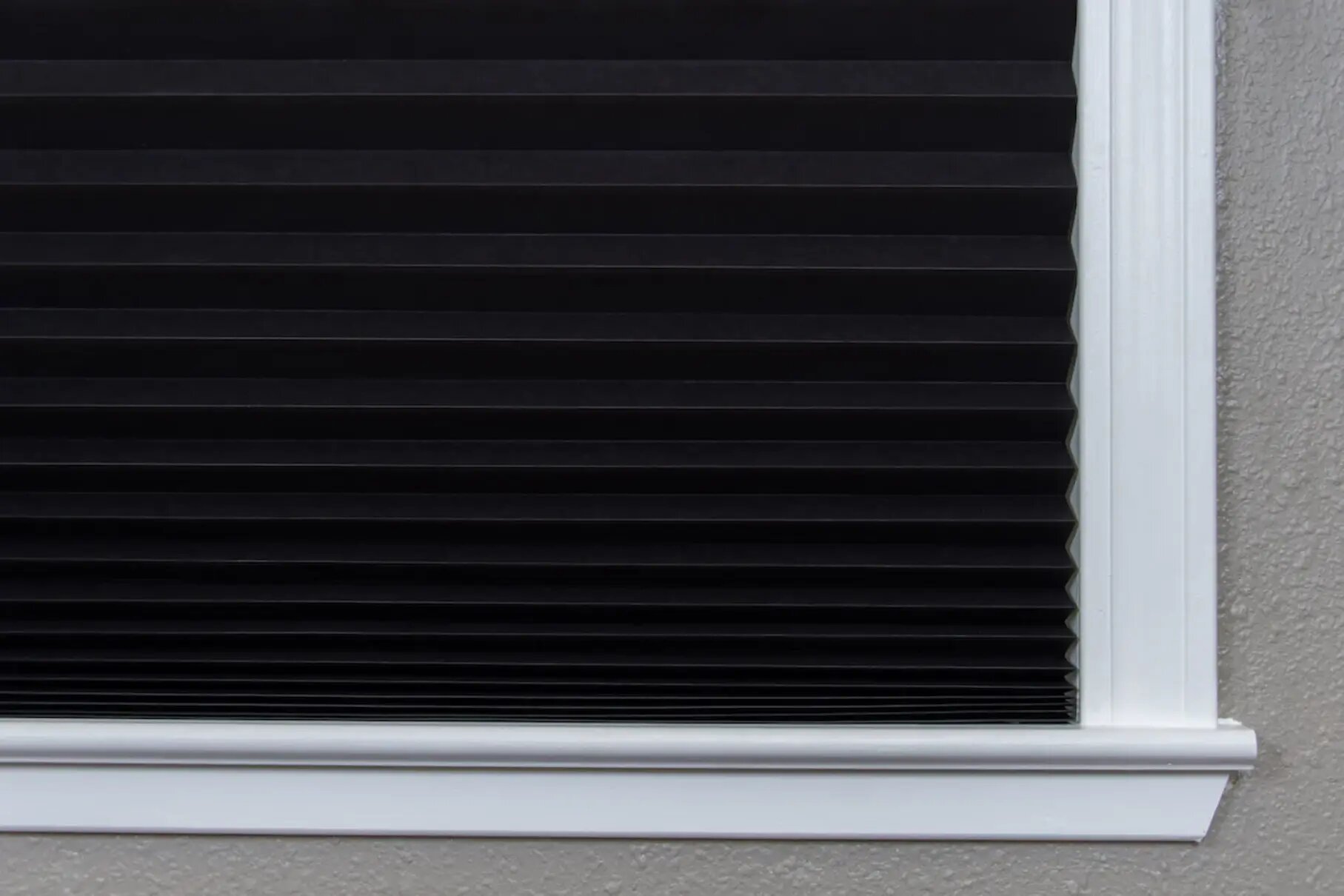 Жалюзи плиссе, чёрный блэкаут, 90х180см, самоклеящиеся, без сверления