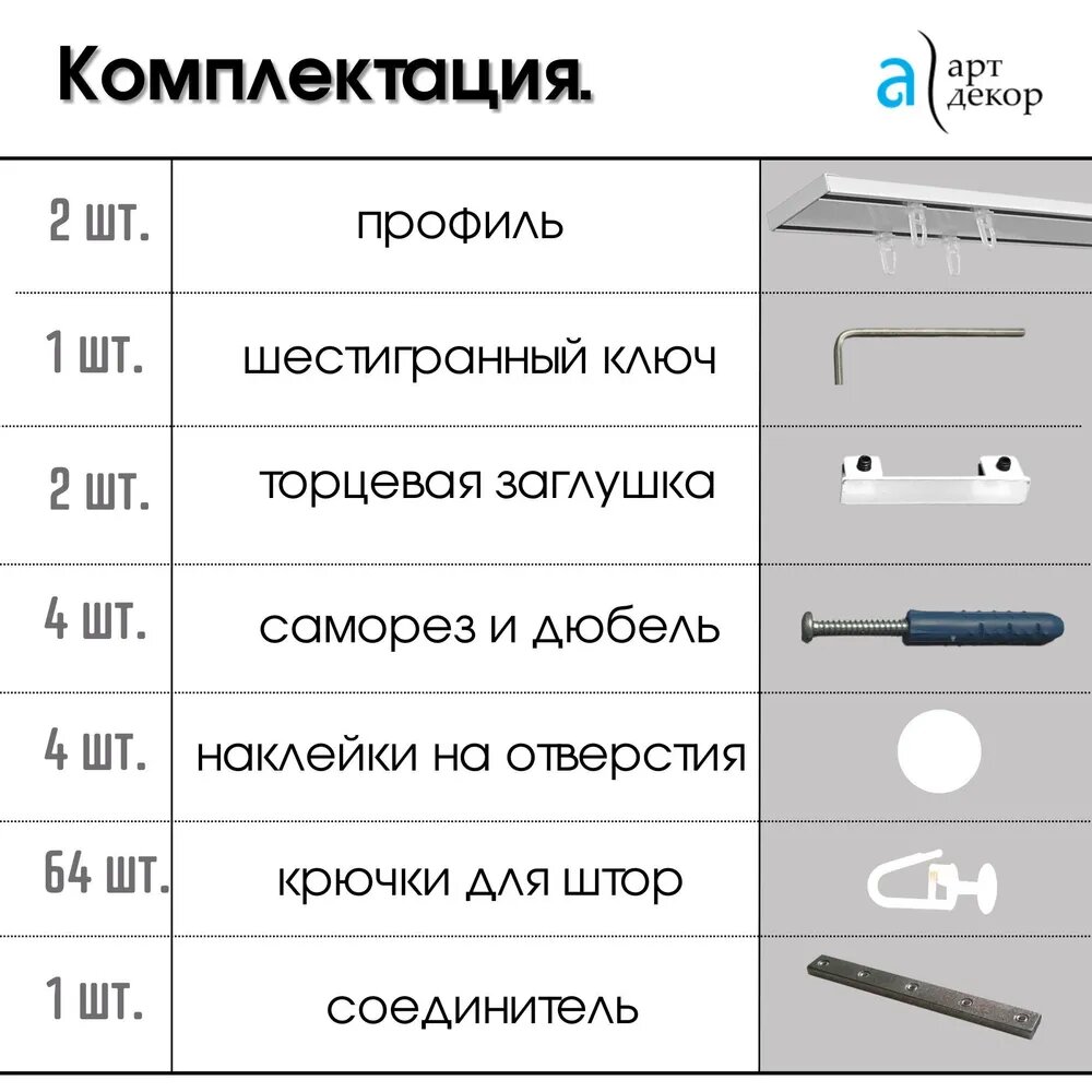 Карниз Арт-Декор для штор 320x5 см, двухрядный, белый, алюминий информация: