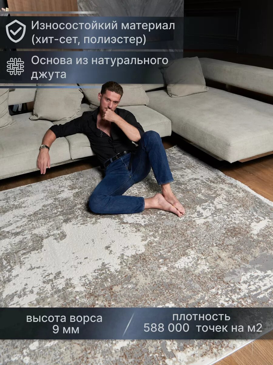 Ковер "Cream-Grey" из Турции, прямоугольный (150x200) в гостиную, зал, спальню, кухню, прихожую, кабинет и комнату