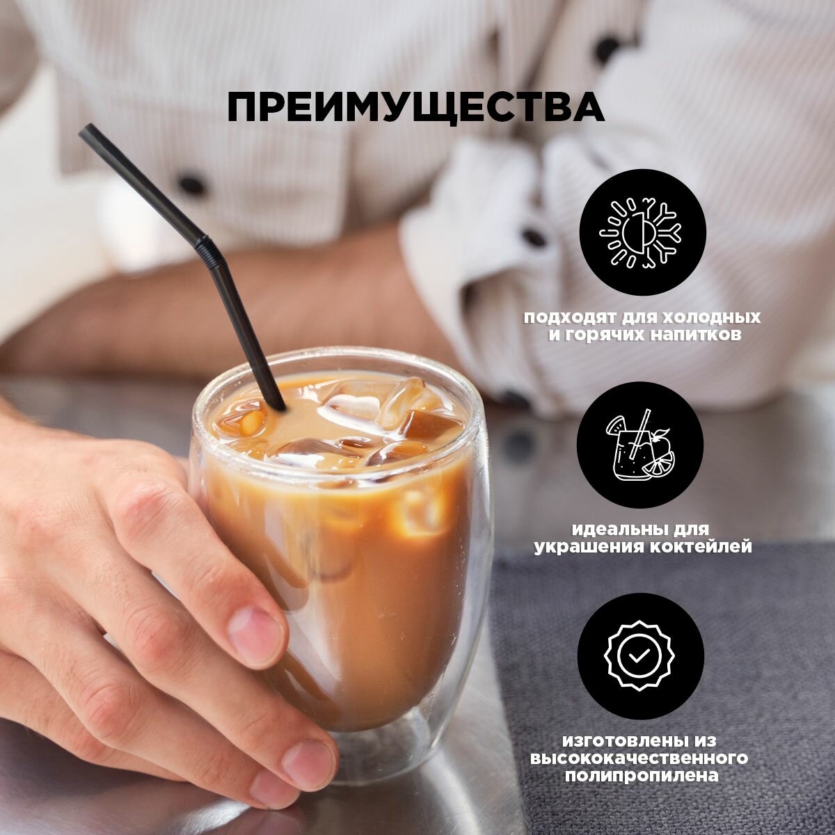 Трубочки для коктейлей Aviora Черные с изгибом, диаметр 5 мм, длина 240 мм, 250 шт (401-979) информация: