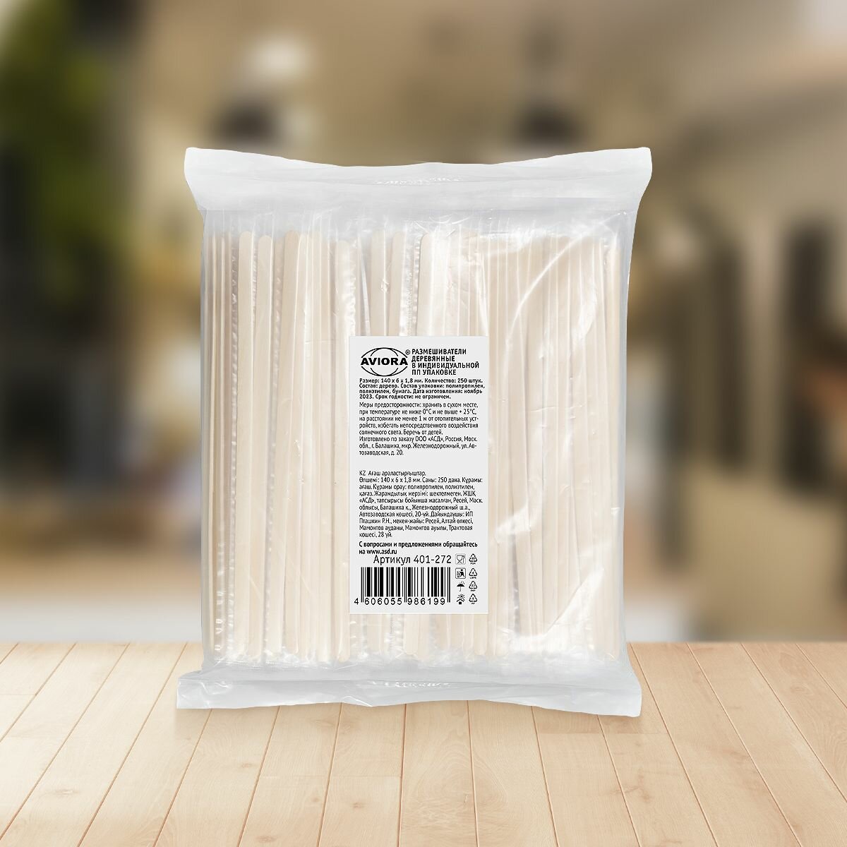 Отзывы на AVIORA Размешиватели для напитков, деревянные, в индивидуальной ПП упаковке, 140x6 х 1,8 мм, 250 шт/уп, 401-272