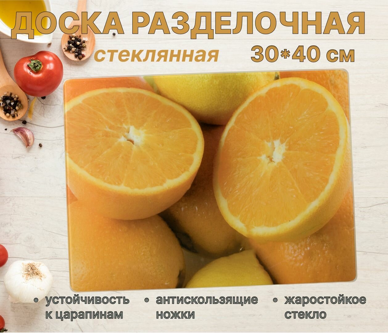 Отзывы на Доска разделочная Gotoff, универсальная, стеклянная, 40*30 см, рисунок Апельсины