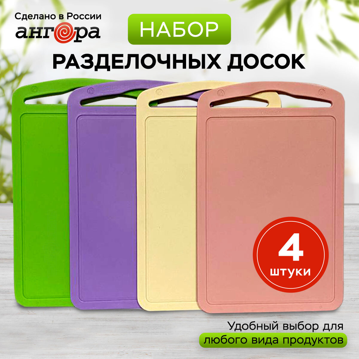 Отзывы на Набор разделочных досок из 4 штук , Ангора, 32х 20,5см, цвет зеленый/сирень/крем/розовый