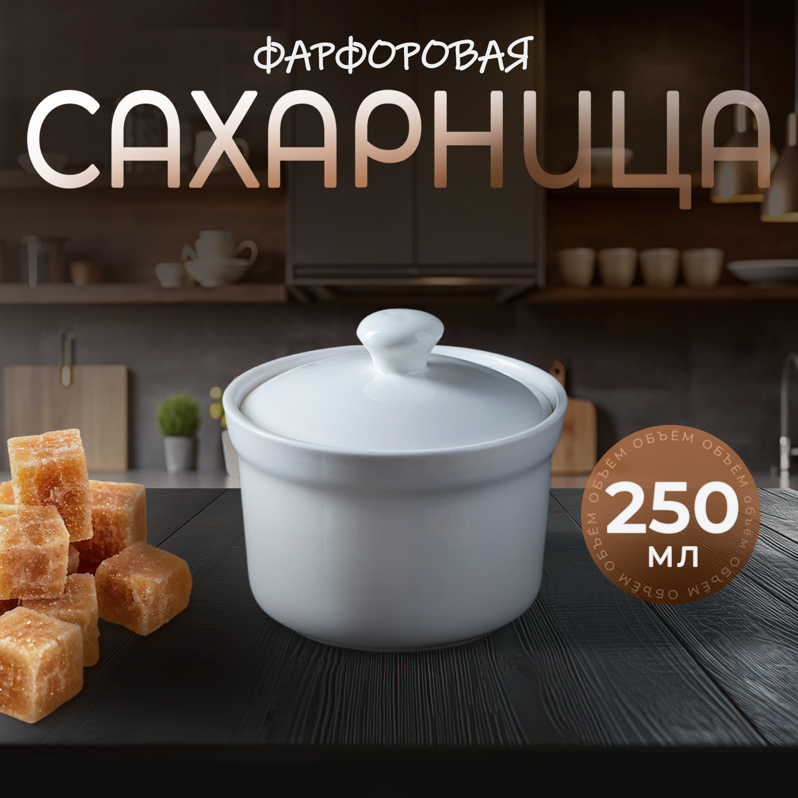 Сахарница фарфоровая с крышкой 450 мл Добрушский фарфор Белый