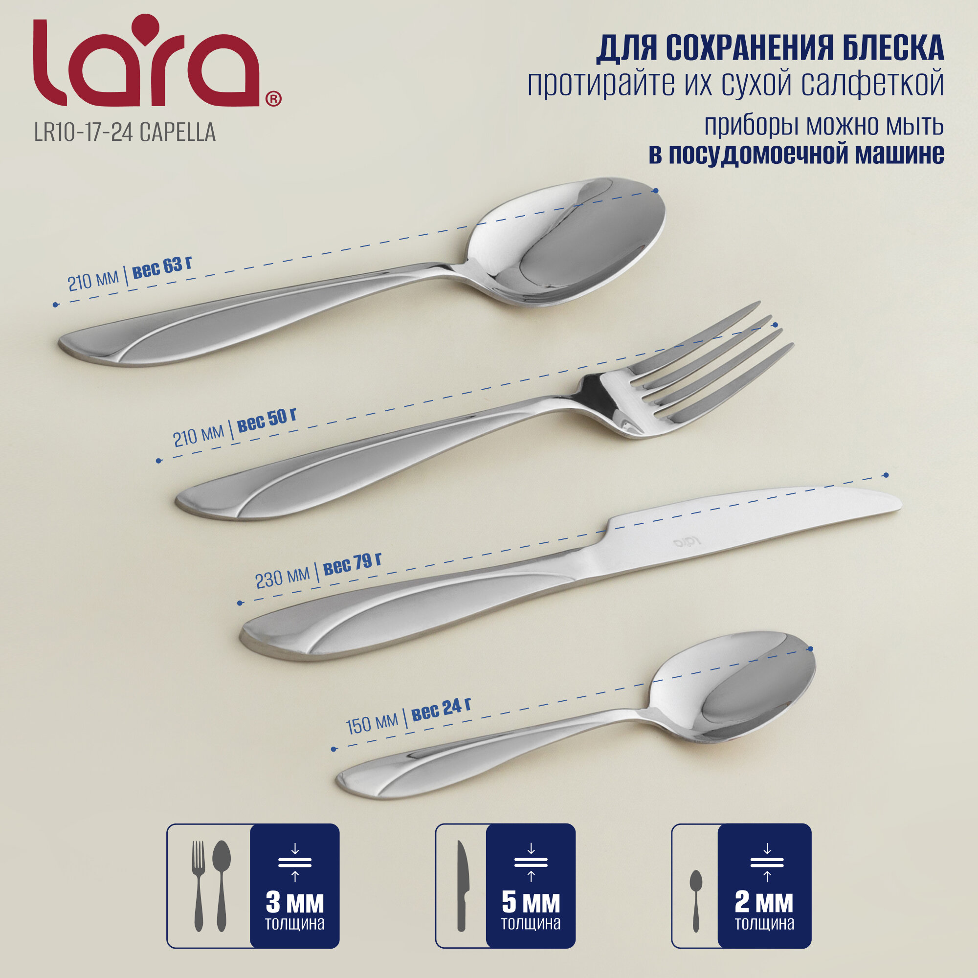 Отзывы на Набор столовых приборов LARA LR10-17/24 - серия CAPELLA, 24 предмета, зеркальная полировка