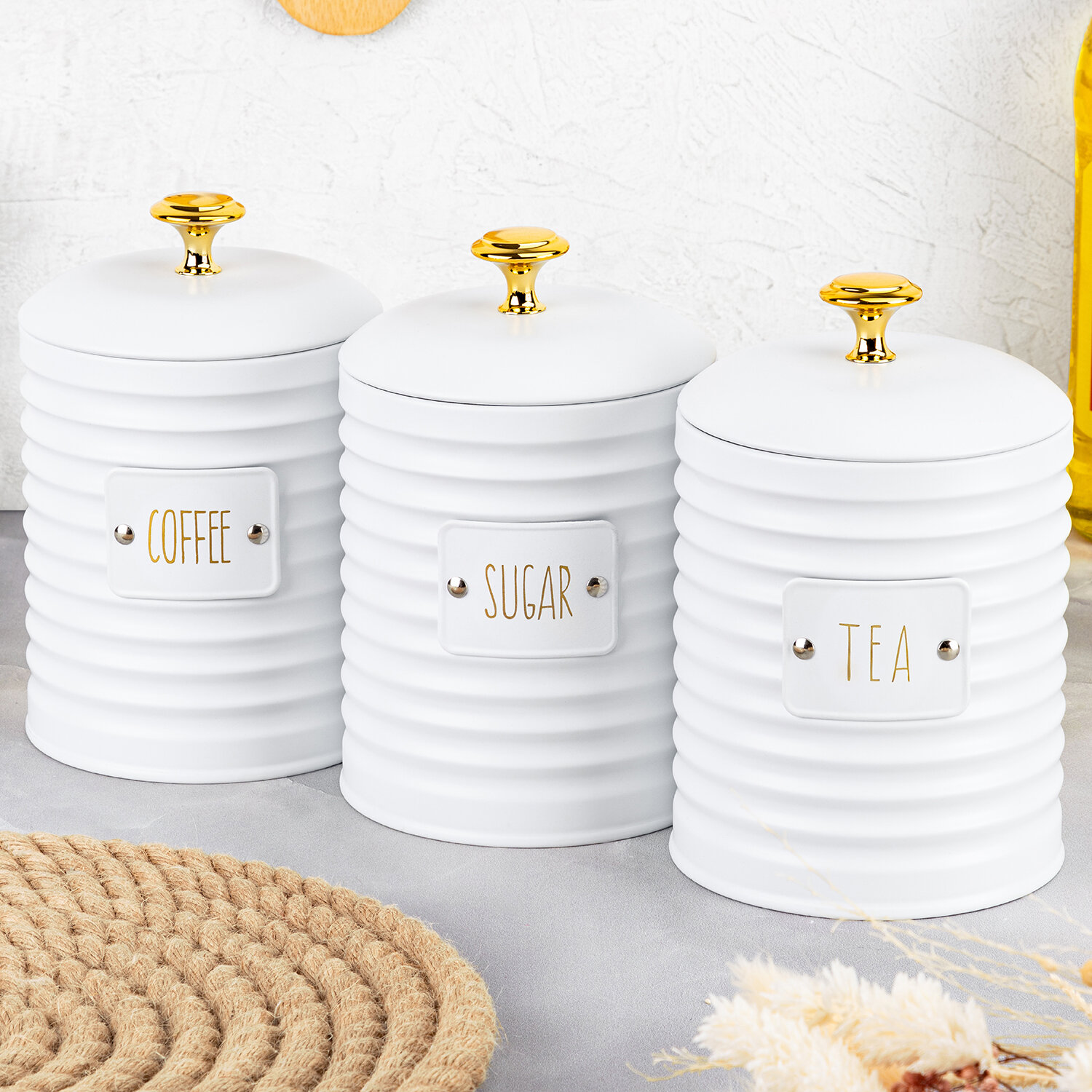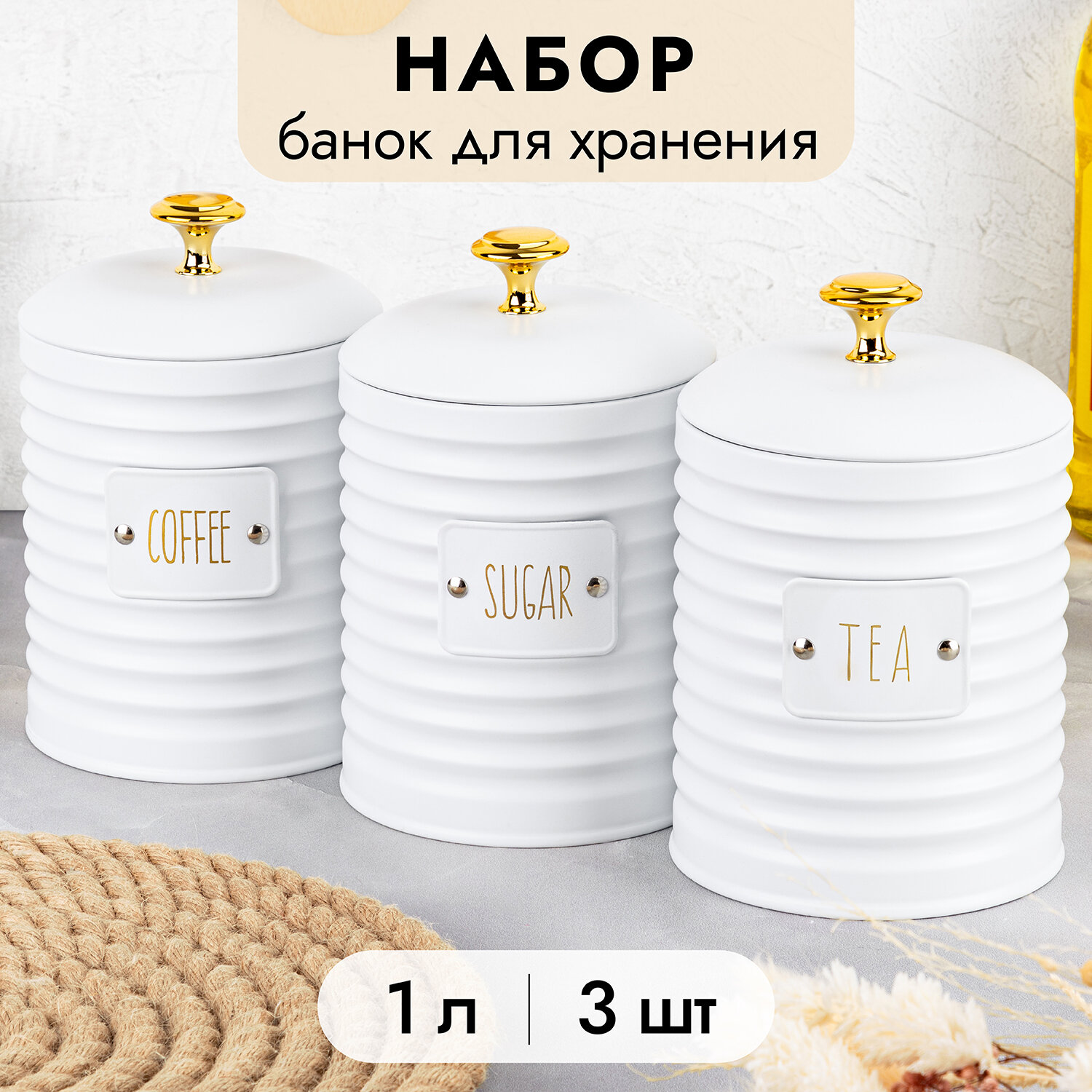 Отзывы на Банка для хранения сыпучих продуктов 3 шт Elan Gallery Tea 1 л, coffee, sugar, белый, с крышками, набор