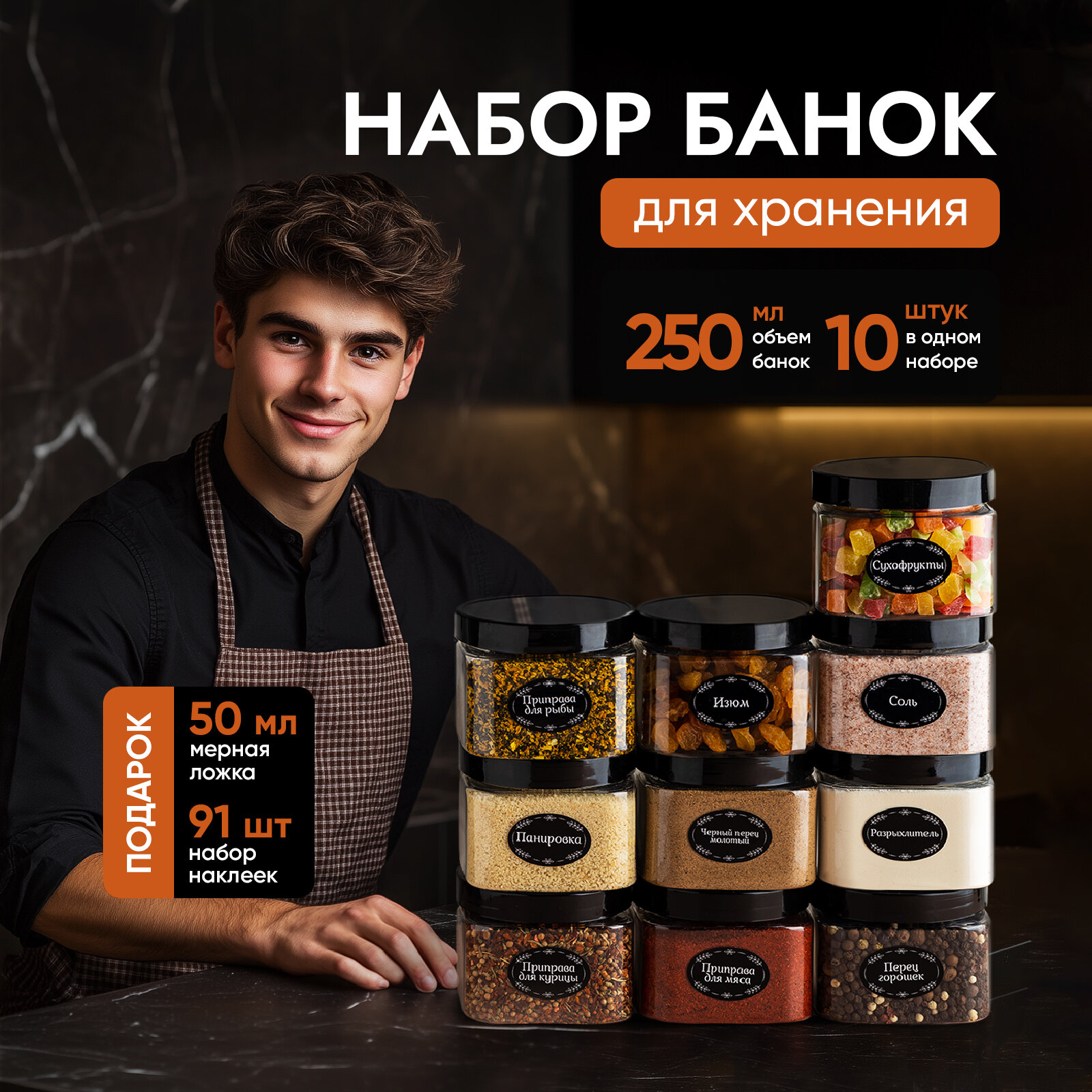 Банки для круп и сыпучих продуктов контейнер 250 мл/10 шт квадратной формы, для специй информация: