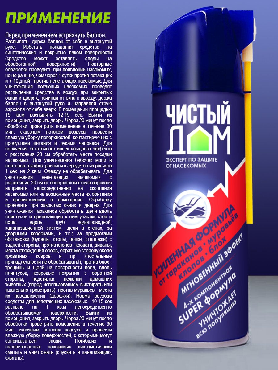 Аэрозоль супер "Чистый Дом" от насекомых усиленная формула, 400мл информация: