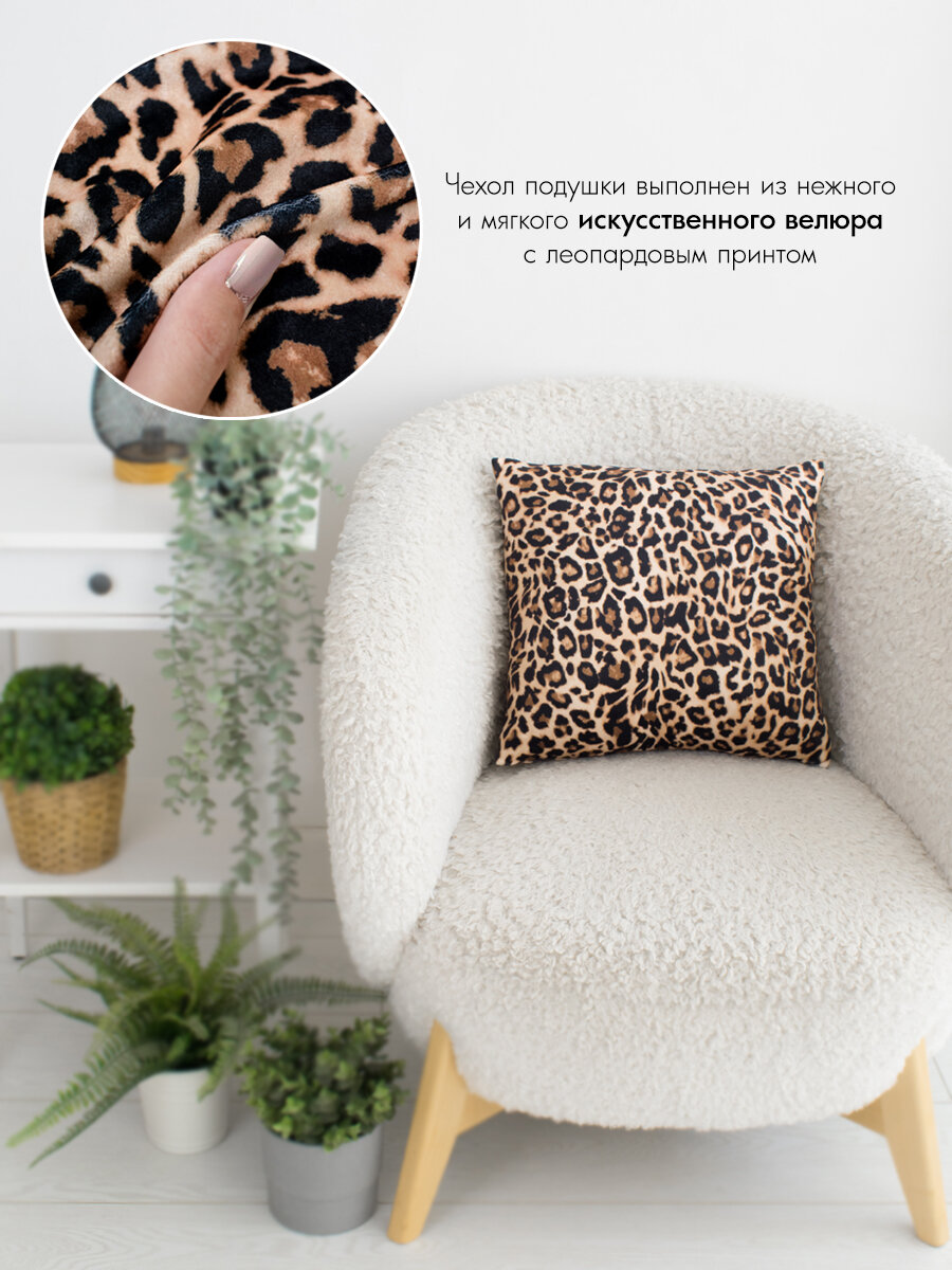Подушка декоративная 40 на 40 см на диван, кровать, подоконник, на кресло, на качели, в салон, леопард информация: