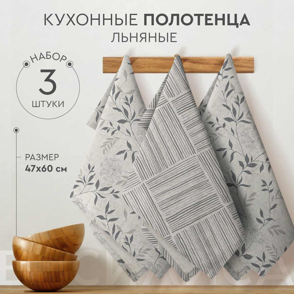 10 цен на Набор полульняных полотенец Василиса 47х60 см - 3 штуки, Акация