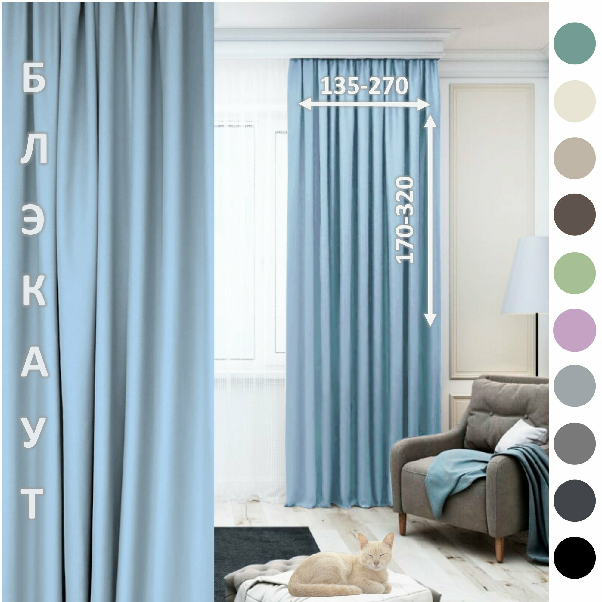 Штора светозащитная для комнаты и спальни "Блэкаут матовый голубой" 270x320 на ленте 3 485 ₽