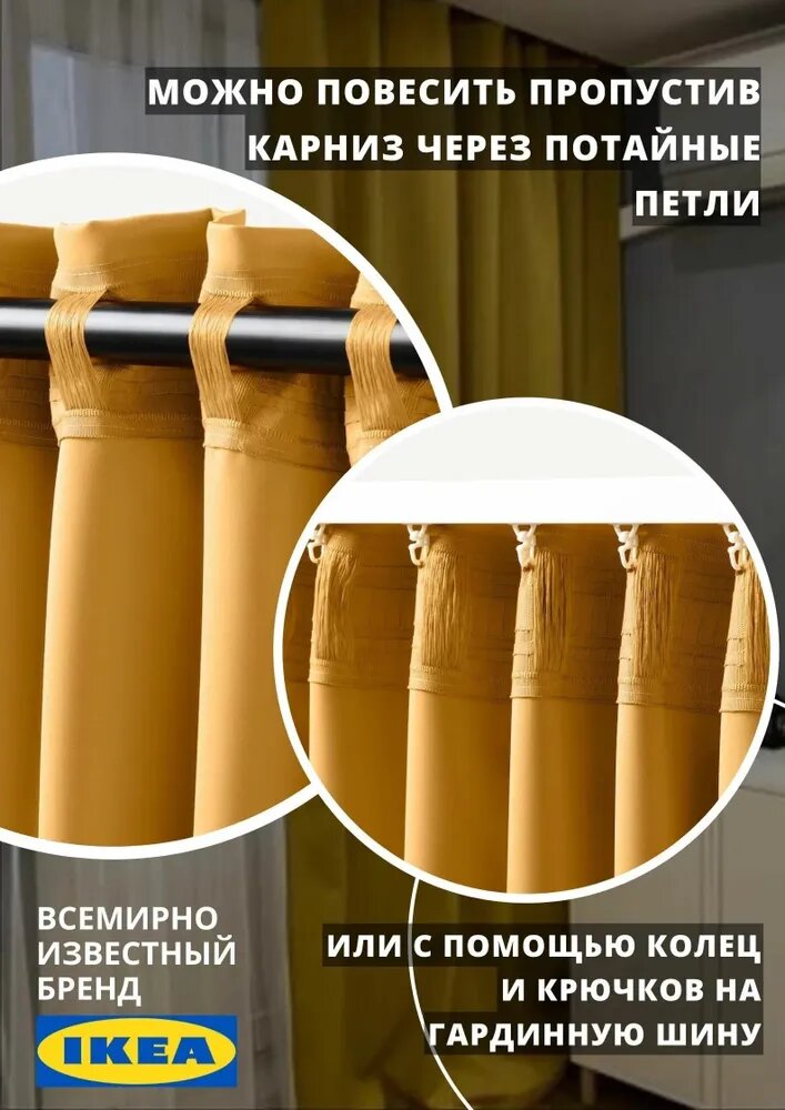 Гардины майгулл икеа шторы на ленте блэкаут, 145х300 см, 2 шт., желтый 4 399 ₽