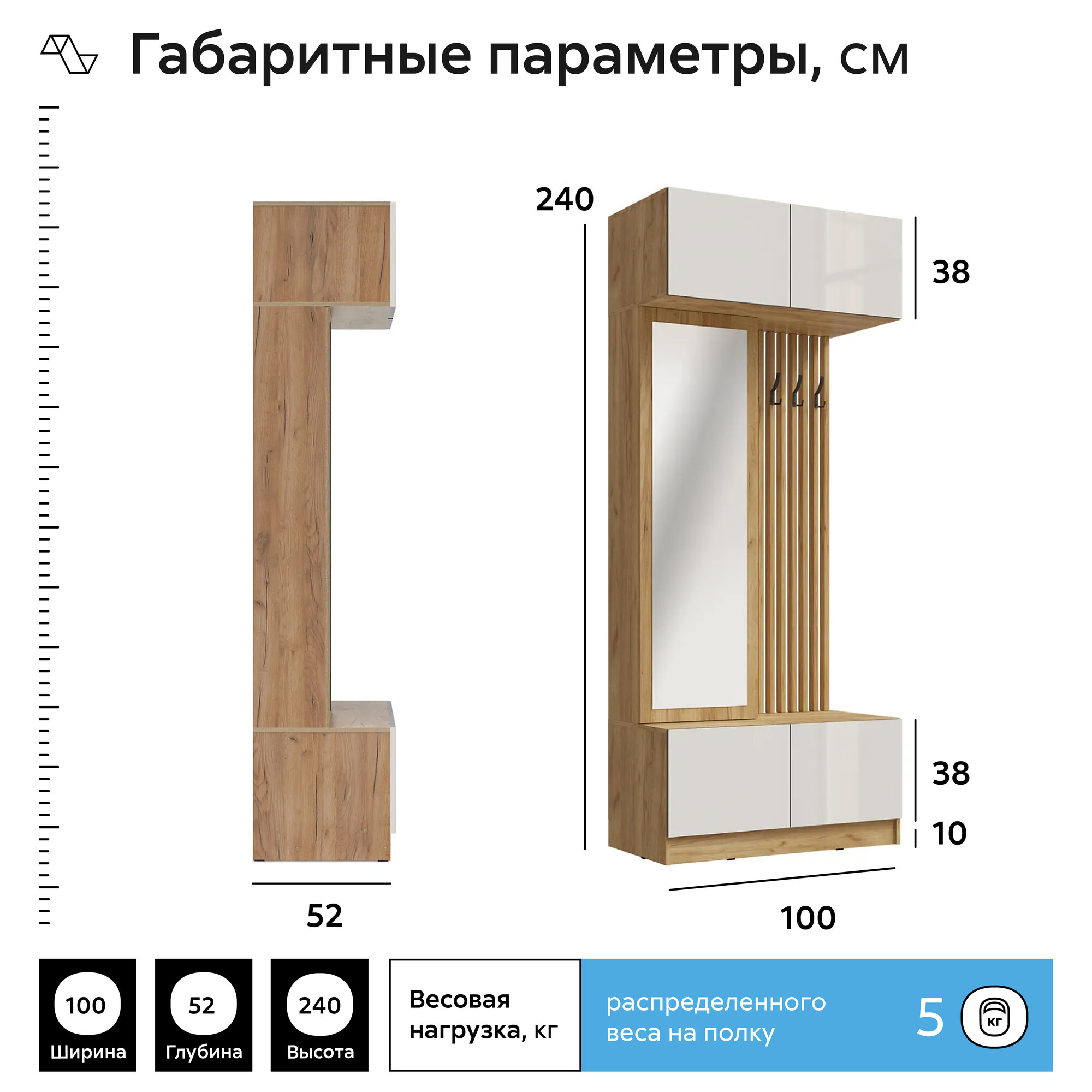 Прихожая Нонтон Роджина дуб крафт / белый глянец 100х52х240 см информация:
