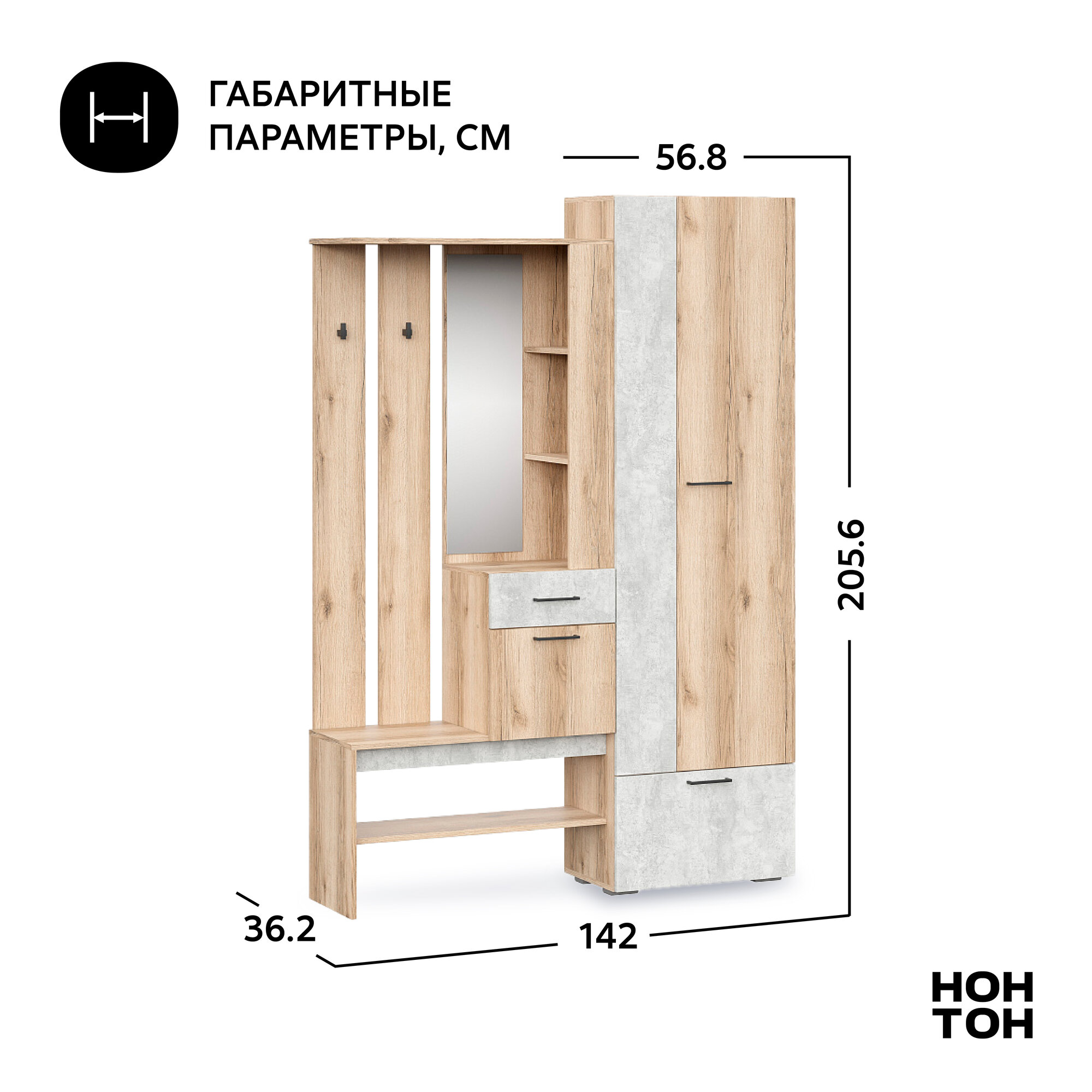 10 цен на Прихожая Фаворит Нонтон дуб делано / цемент светлый 142х35.2х205.6 см