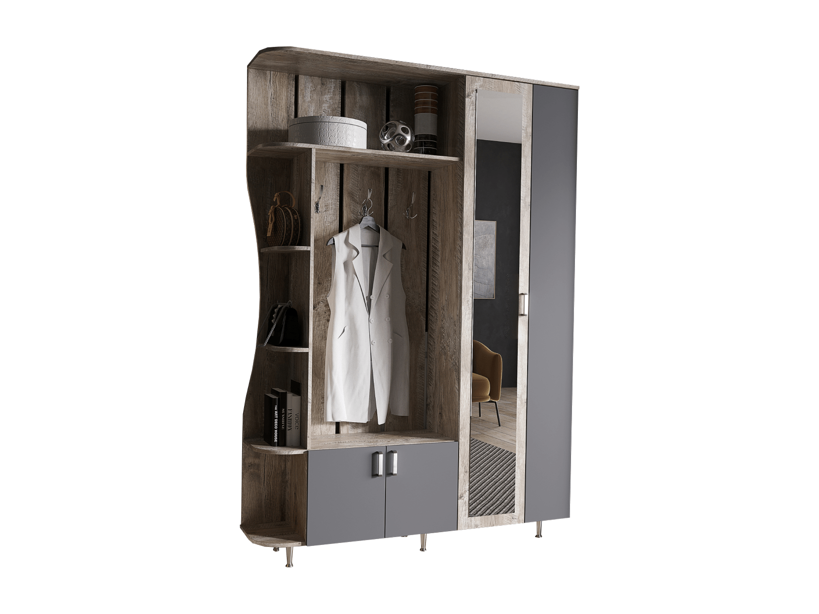 | Особенности | для маленькой прихожей, для узкой прихожей, крепление к стене, модульная конструкция, со штангой для вешалок, угловая конструкция, шкаф с зеркалом |