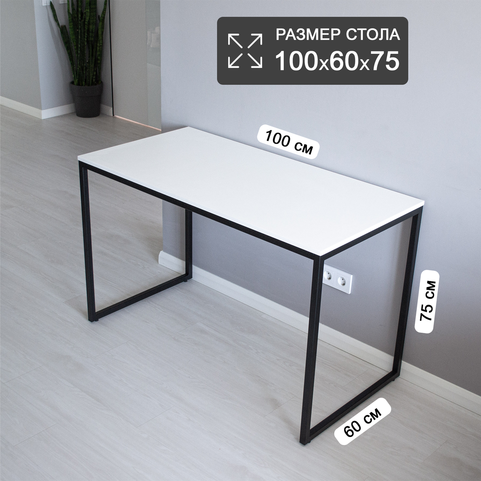 Отзывы на Стол рабочий, кухонный, письменный, компьютерный, обеденный, для кухни, лофт, 100х60х75 см, Черный/Белый