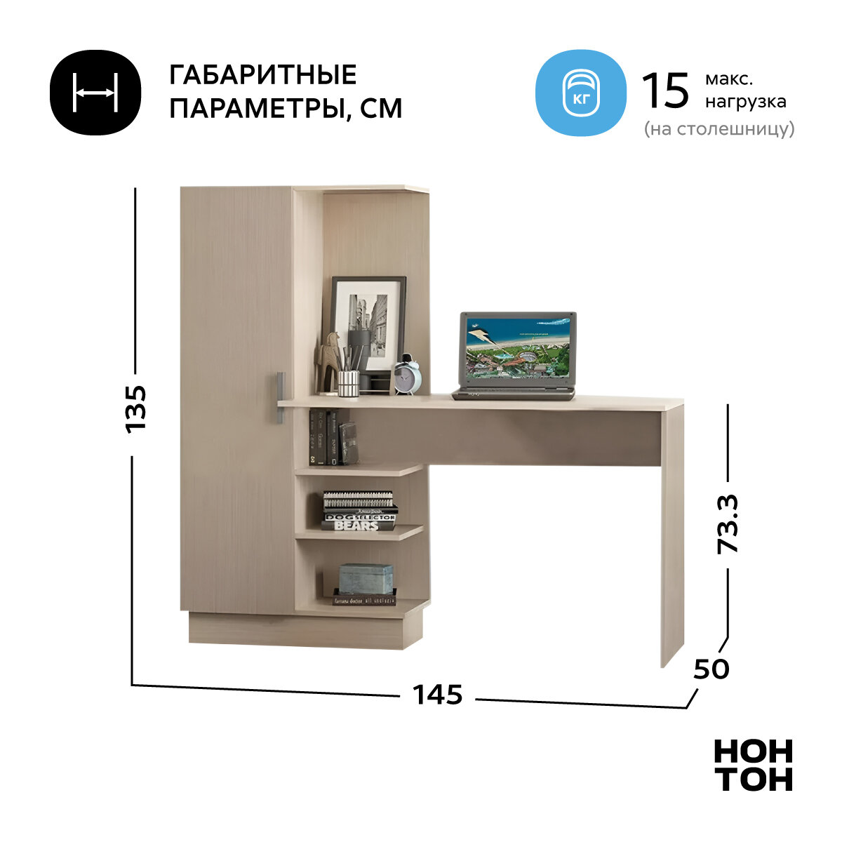 Стол компьютерный №1 Нонтон дуб беленый 145х50х135 см информация: