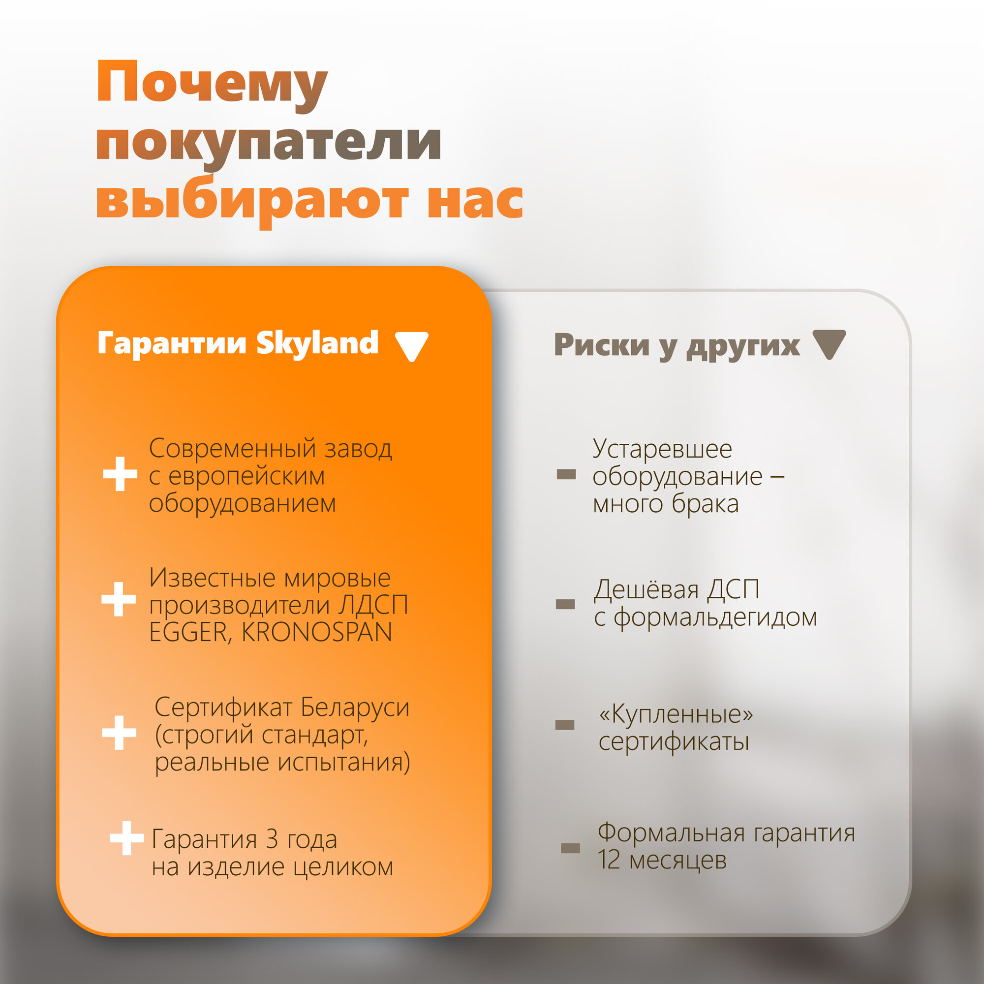 | Дополнительная информация | Все детали облицованы кромкой ПВХ. Регулируемые опоры компенсируют неровности пола. |