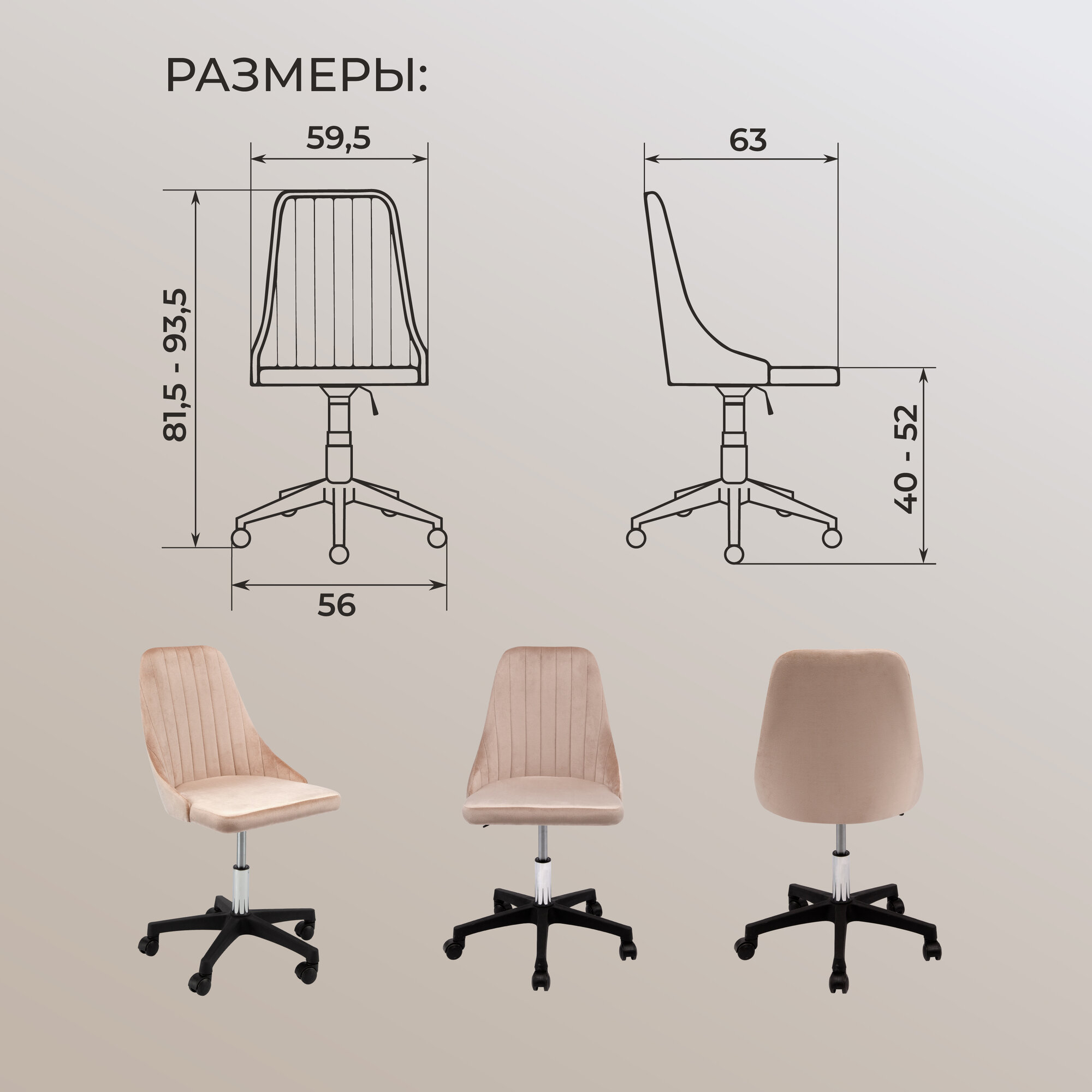 | Конструктивные особенности | без подлокотников / с газлифтом / с колесами (роликами) |