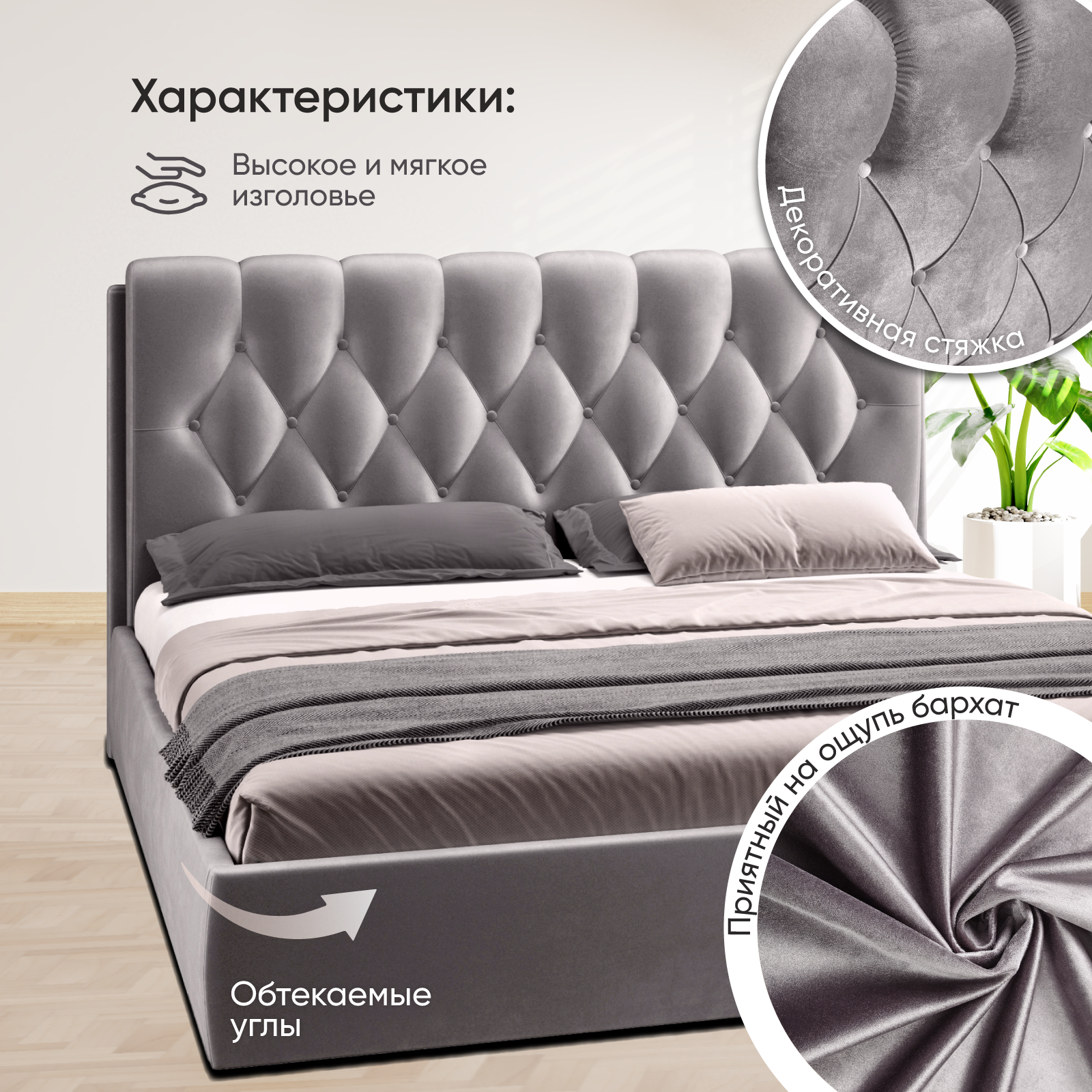 Двуспальная кровать 140х200 см с подъемным механизмом Империя для дома и спальни, бархат серый, Ами Мебель 24 999 ₽