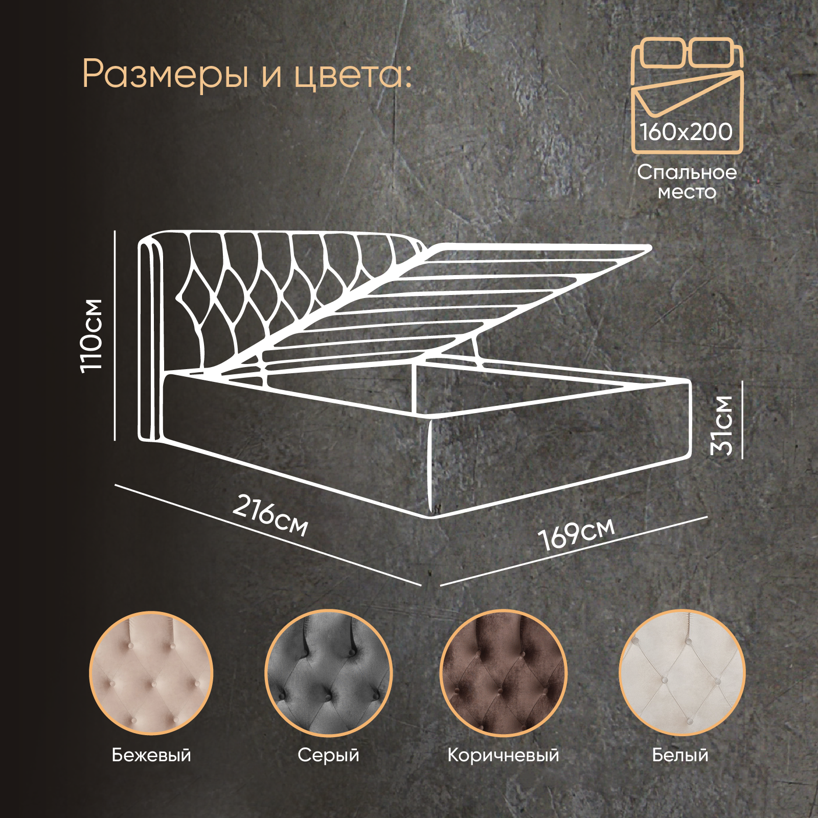 Двуспальная кровать 160х200 см с подъемным механизмом, Империя с мягким изголовьем для дома и спальни, ортопедическое основание, ламели усиленные, ящик для белья, бархат бежевый, Ами Мебель Беларусь 25 539 ₽