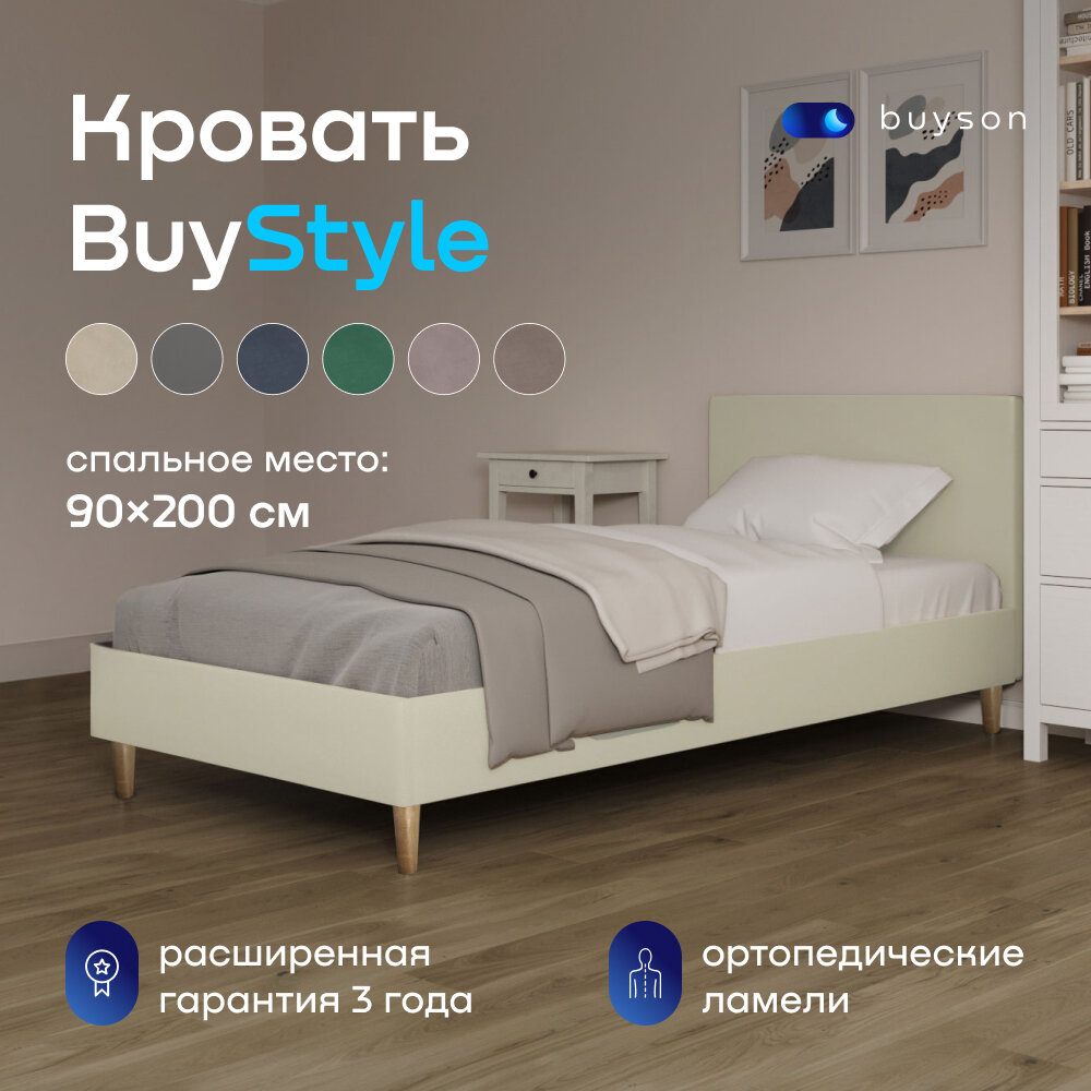 Отзывы на Односпальная кровать buyson BuyStyle 200х90 см, микровелюр, слоновая кость