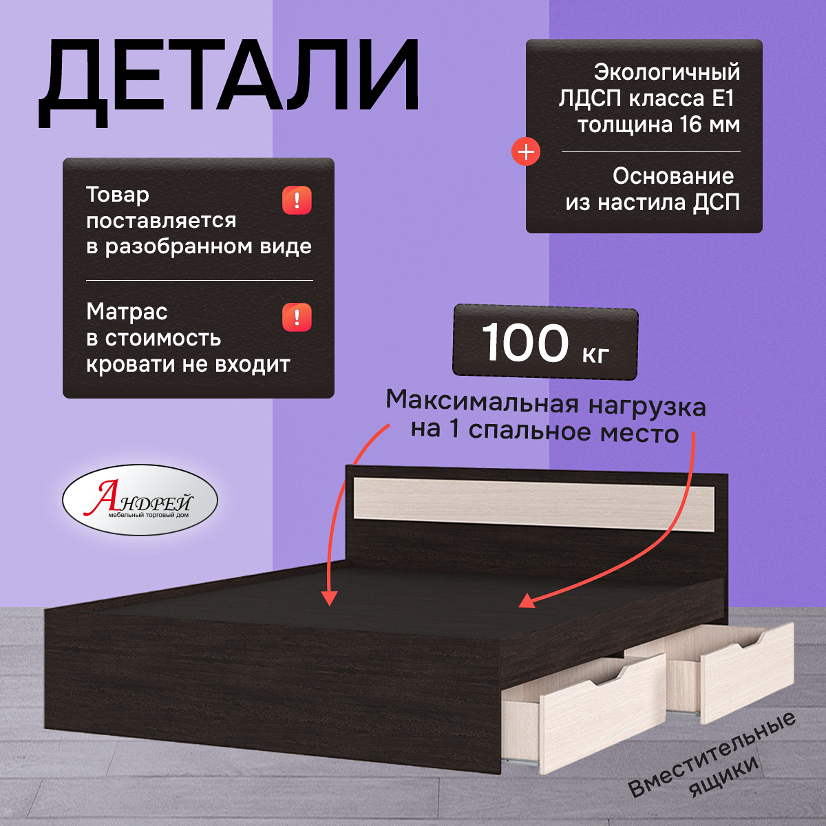 Двуспальная кровать с ящиками "Гармония" КР 605 140х200 Белфорт/Венге 14 319 ₽