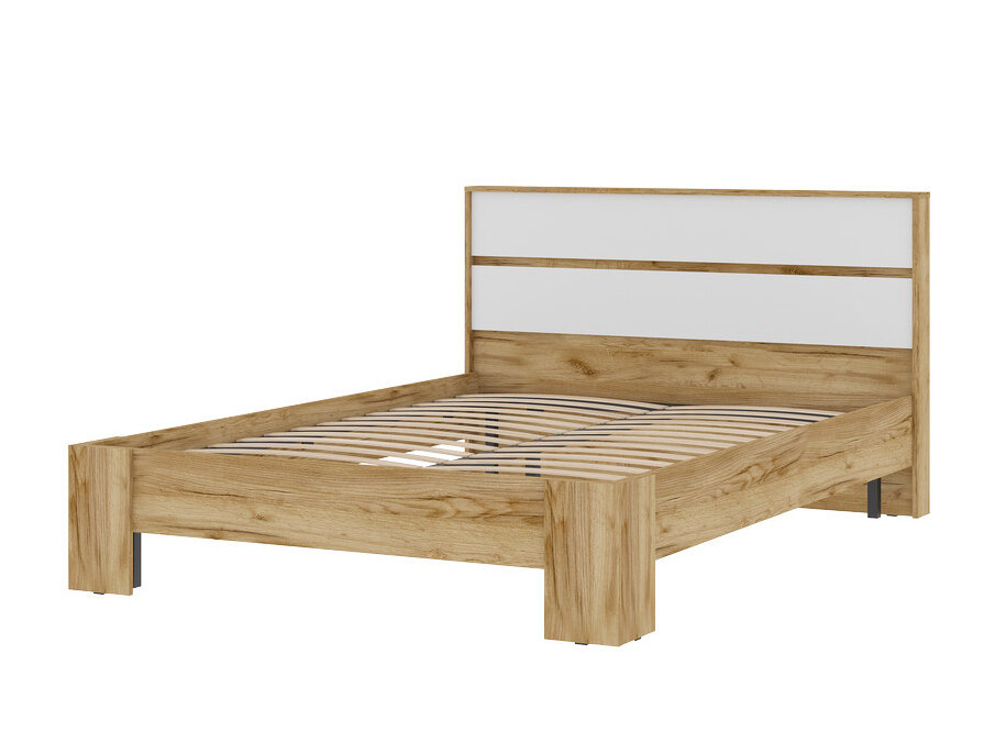 Кровать двуспальная Сальма с изголовьем 140х200 см, Белый глянец/Дуб анкор светлый