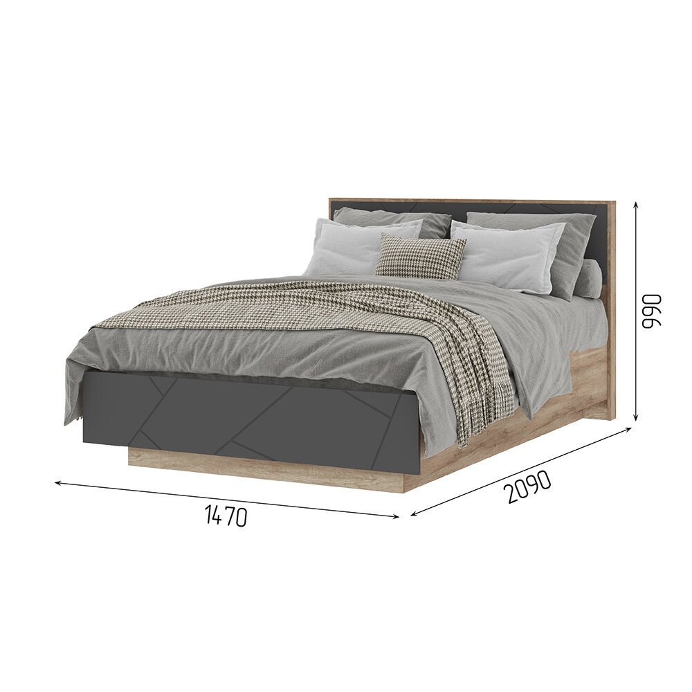 Кровать 1.6х2.0 двухспальная с основанием серый графит/дуб крафт золото ЛДСП/ДСП 18 918 ₽