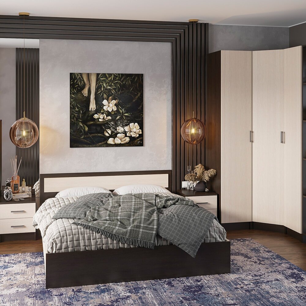 Двуспальная кровать "Паола" КР 703 (170х84.4х212 см) Венге/Дуб крафт золото Стендмебель