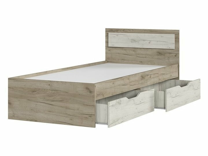 Кровать односпальная Гармония с ящиками (Виктория) 90х200 см, Дуб Белый/Дуб Серый