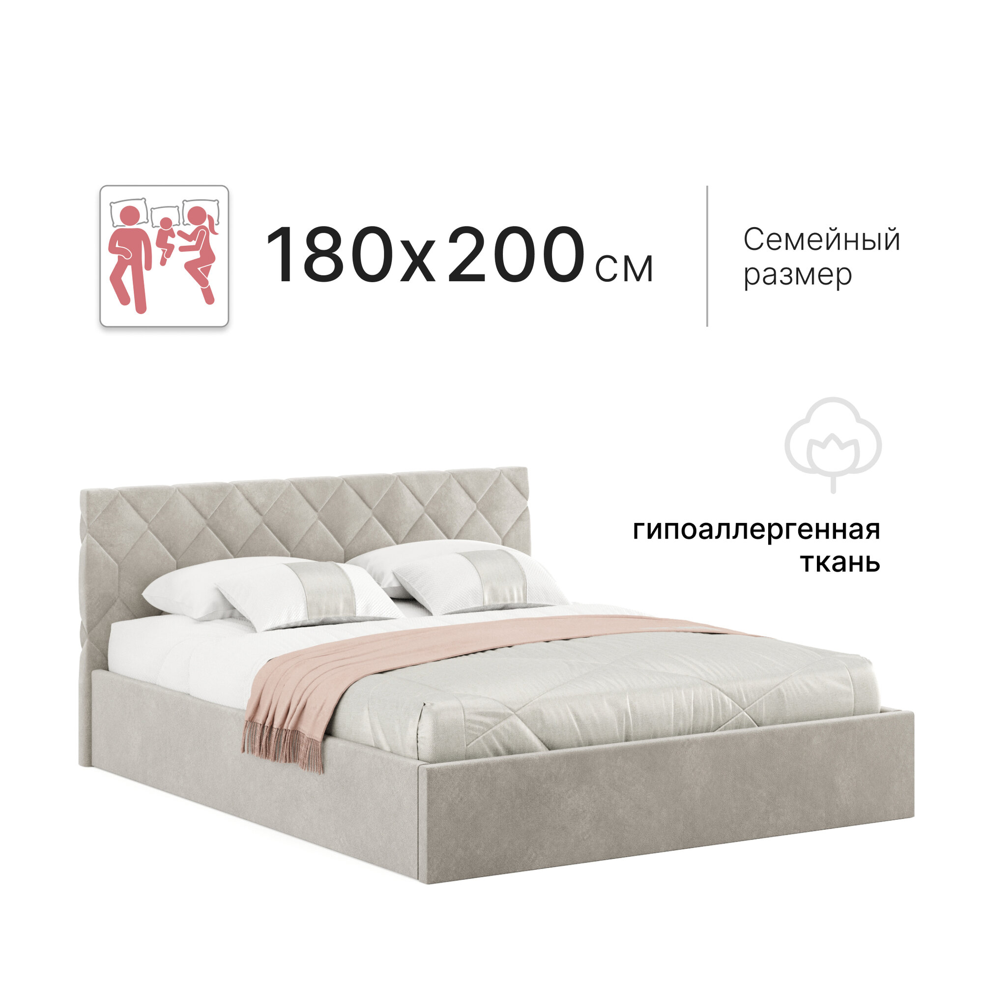 Кровать 180х200 с подъемным механизмом двуспальная Техас с ортопедическим основанием и ящиком для белья, мягкое изголовье, для спальни и дома, велюр светло-бежевый светло-бежевый информация:
