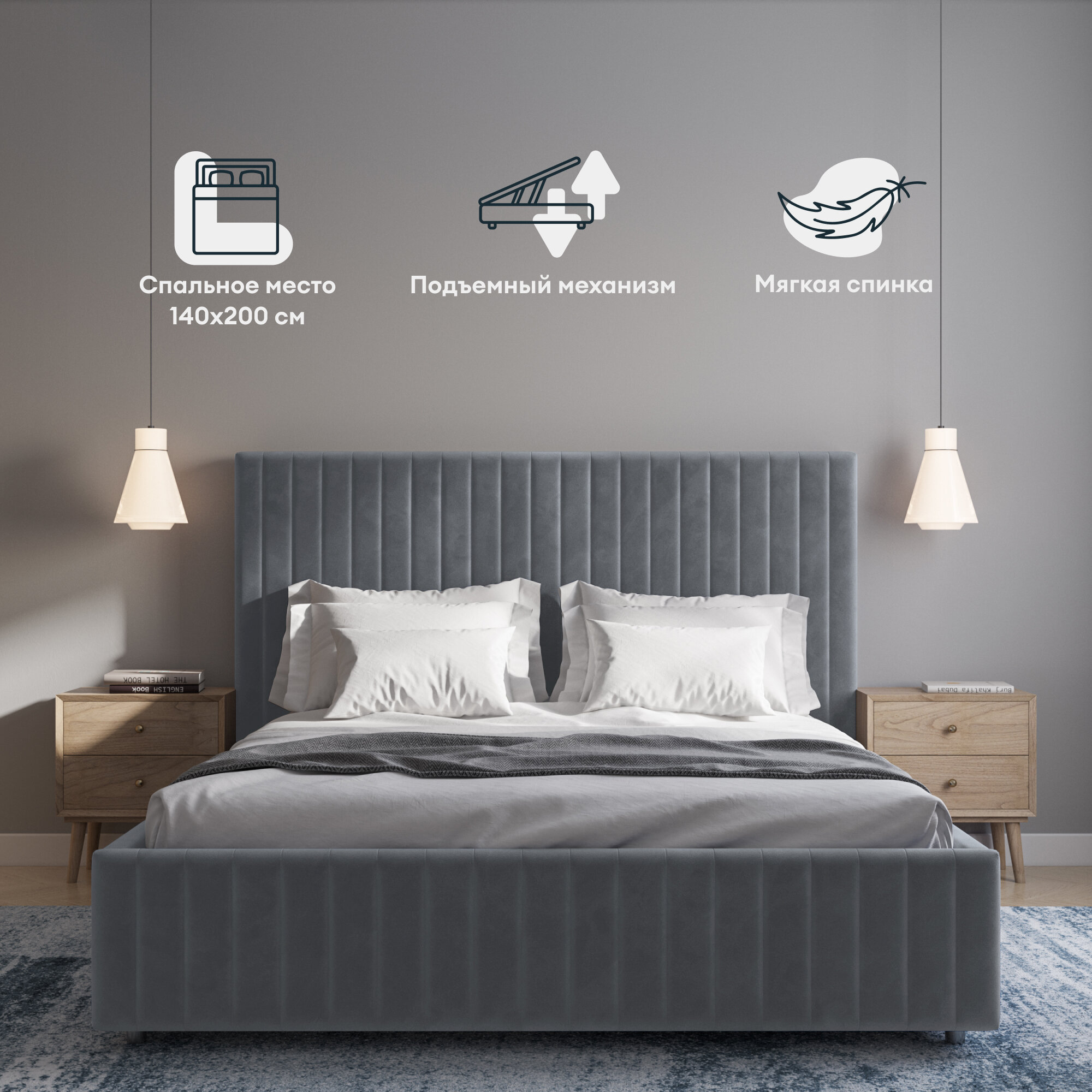 Кровать двуспальная HYPNOZ Salamanca 140х200, с подъёмным механизмом, Светло-серая 36 290 ₽