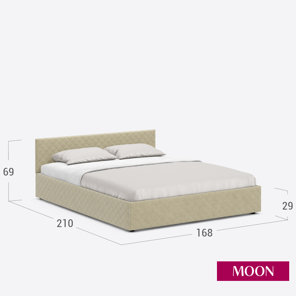 Кровать двуспальная без подъемного механизма, MOON FAMILY 1254, размер 160х200 см, велюр бежевый. Ортопедическое основание в комплекте информация: