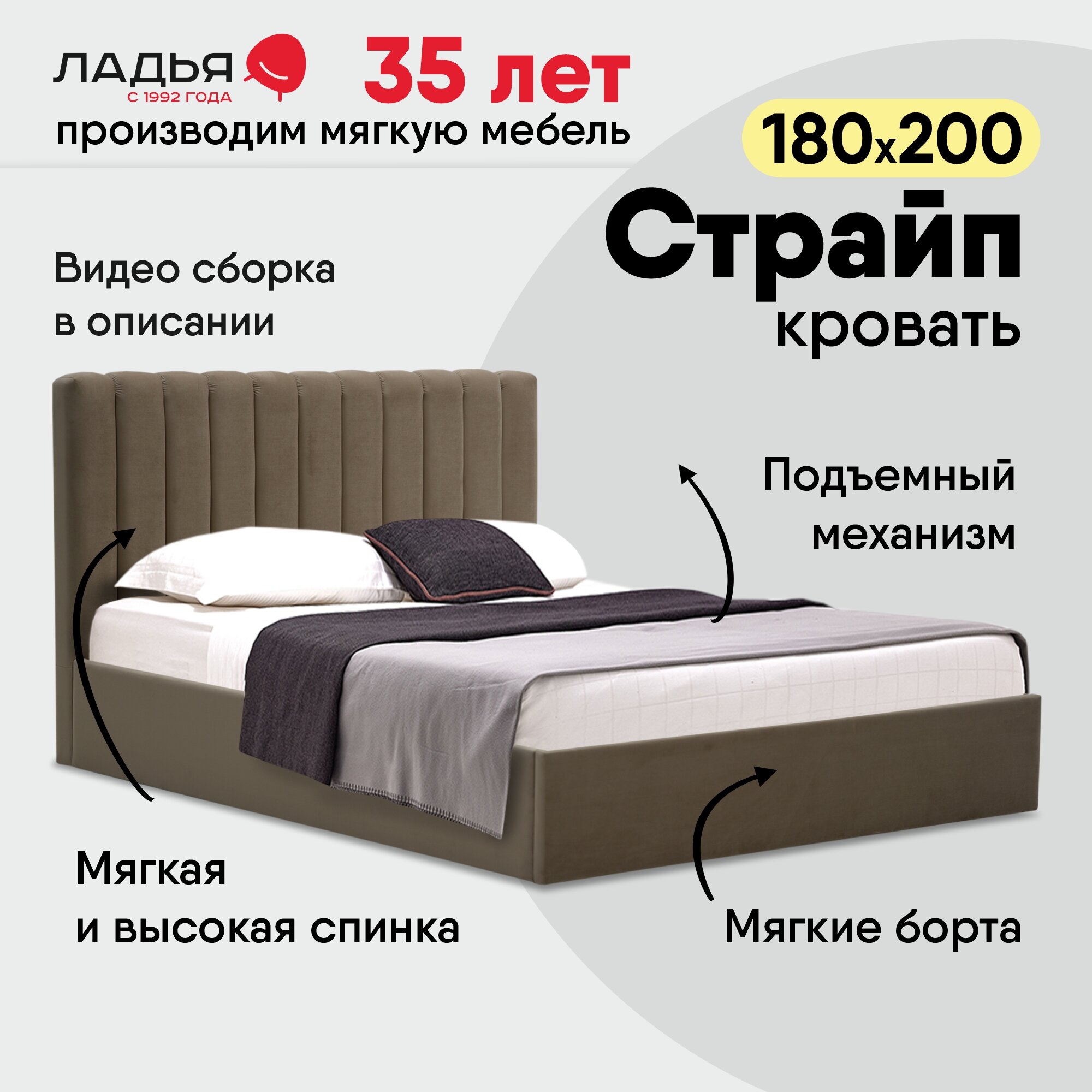 Двуспальная кровать Страйп 180х200 с подъемным механизмом, Ладья, с мягким изголовьем для дома и спальни, ортопедическое основание, ящик для белья, California 102 33 634 ₽