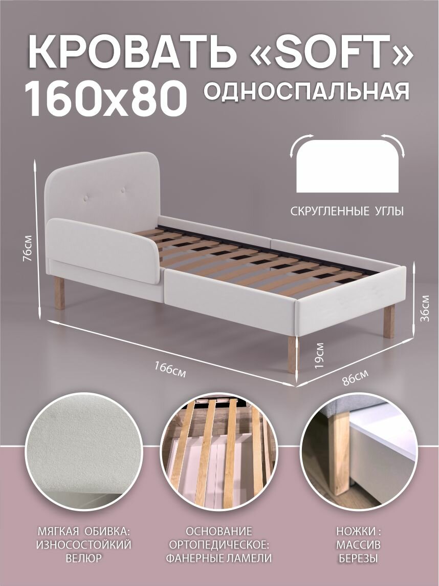 Кровать Fortuna_kids "Версаль", микровелюровая обивка, 160x80х76 см 7 762 ₽