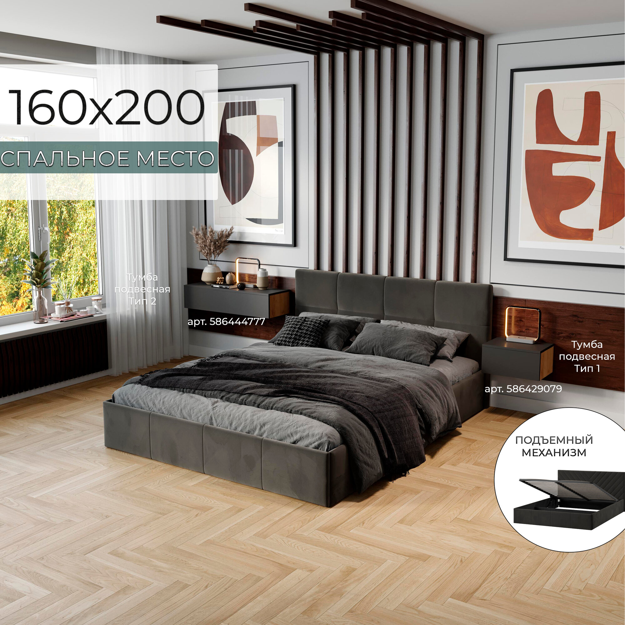 Кровать двуспальная FRENT 160х200 с подъемным механизмом, Мона, Велюр Confetti Stone информация: