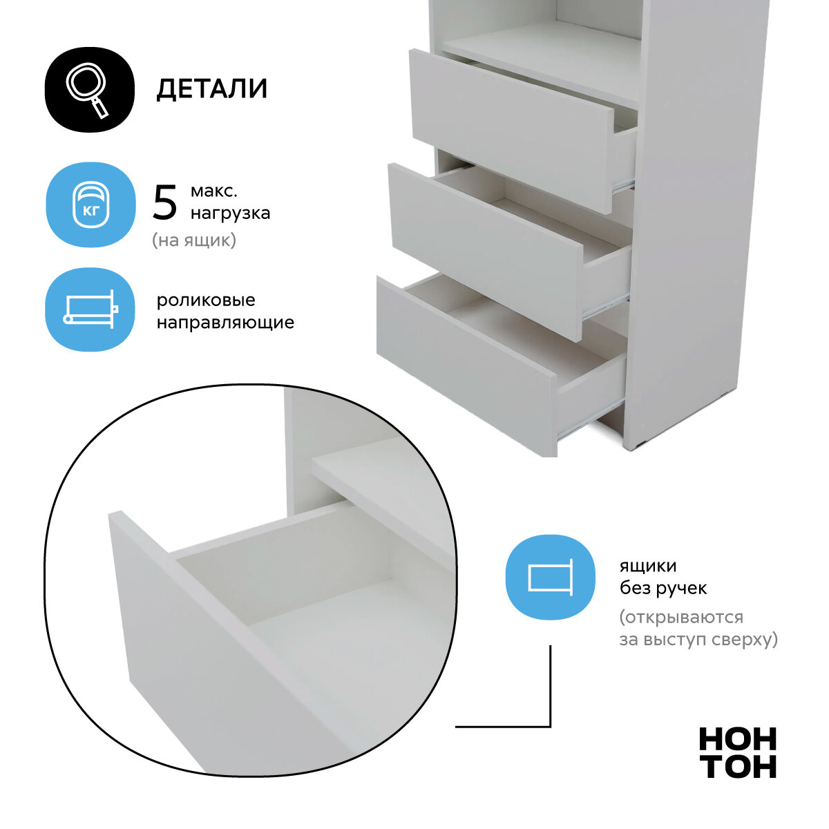 Стеллаж Интерьер-Центр Айден с 3-я ящиками белый 60x35x200 см 4 690 ₽