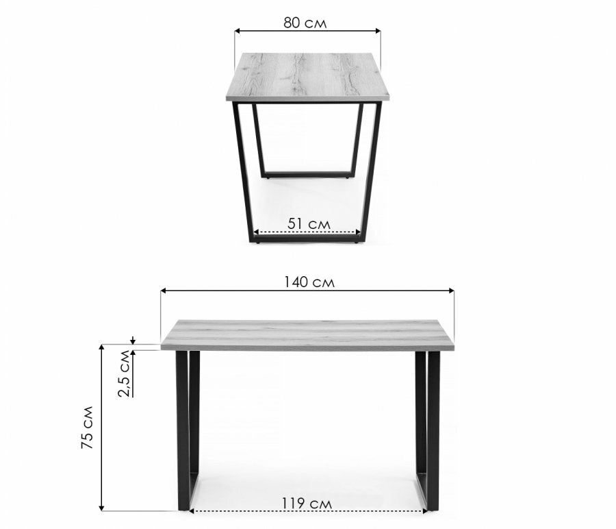 Стол LM.RU Лота Лофт 140 25 мм дуб делано светлый / черный матовый 10 530 ₽