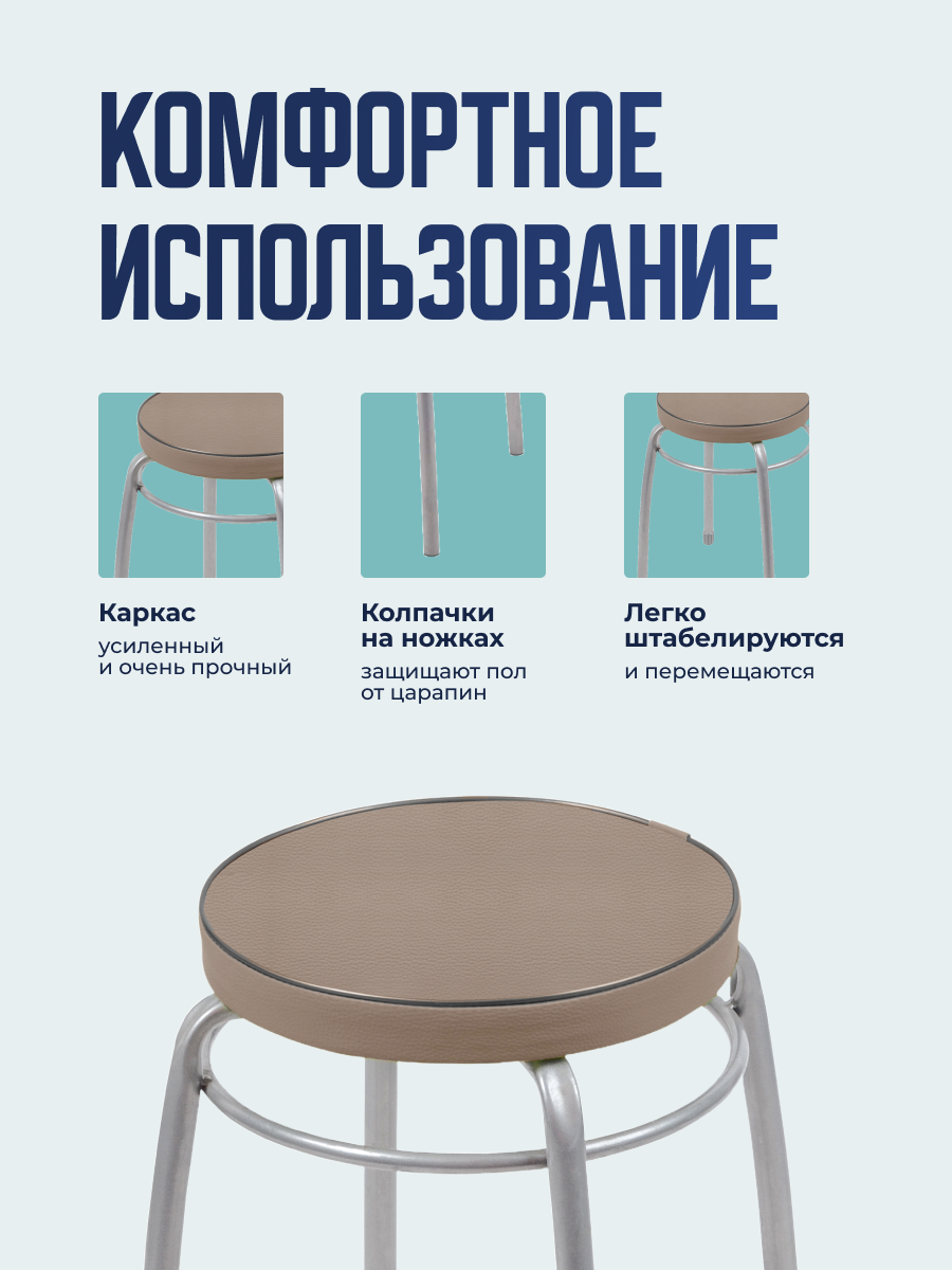 | Дополнительная информация | Табурет круглый 320мм светло-серый искусственная кожа/металл |
