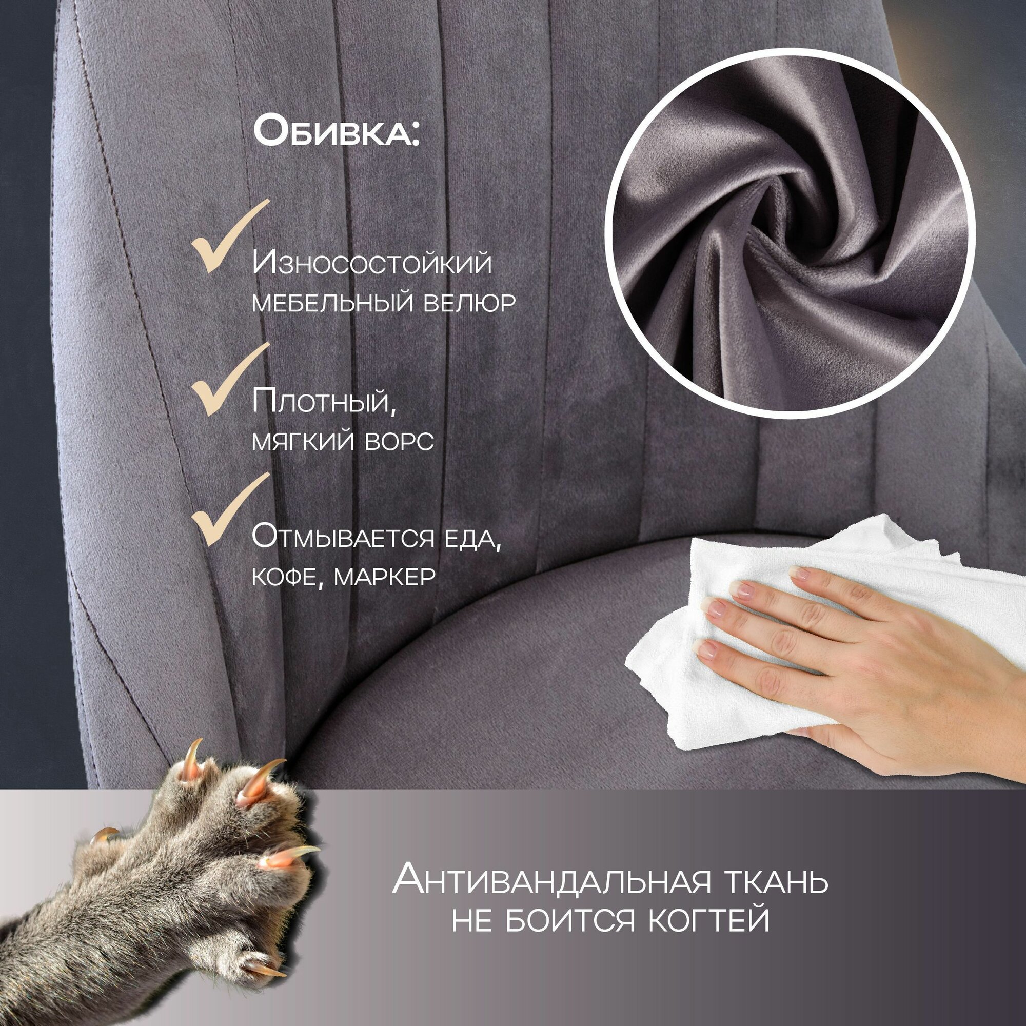 Отзывы на Барные стулья для кухни 2 штуки Лондон , кухонные стулья со спинкой, обивка вельвет серый, АМИ мебель Беларусь