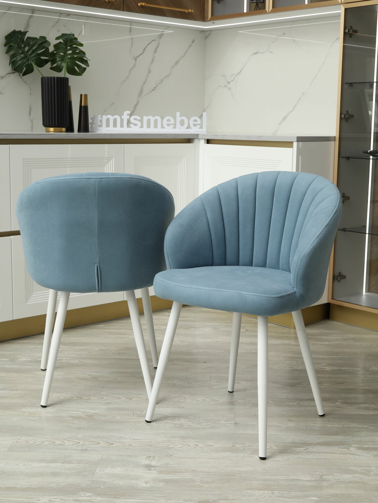 Комплект стульев "Зефир" для кухни светло-синий / белые ноги, стулья кухонные 2 штуки 12 000 ₽