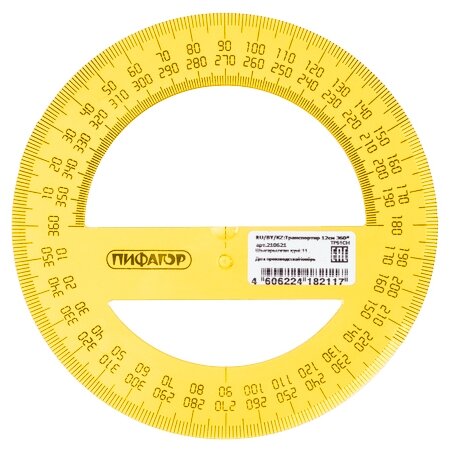 Отзывы на Транспортир 12 см, 360 градусов, пифагор, прозрачный, неоновый, ассорти, 210621